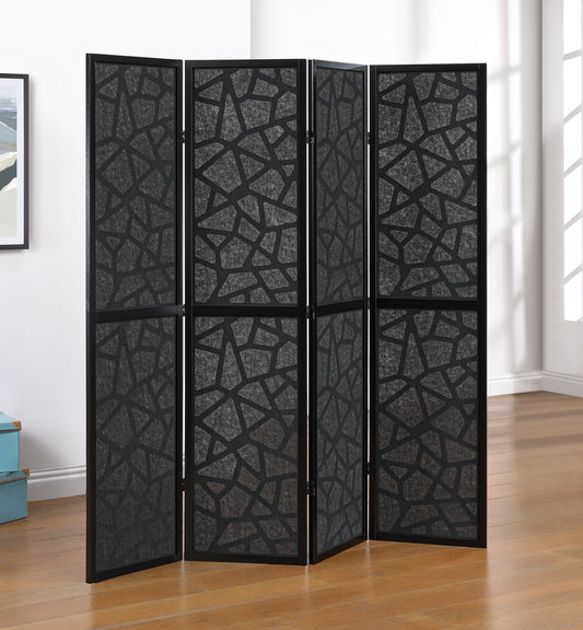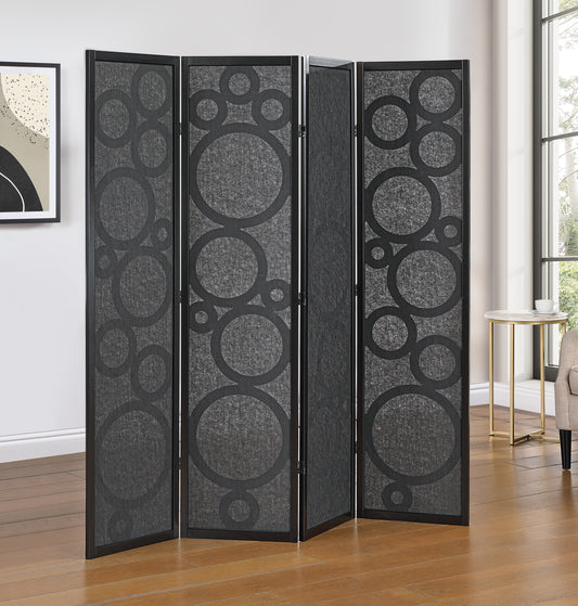 Arvada 4-Panel Wood Room Divider with Circle Pattern, Black