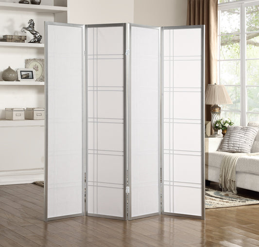 Quarterfoil infused Diamond Design 4-Panel Room Divider, Silver