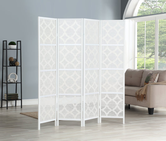 Quarterfoil infused Diamond Design 4-Panel Room Divider, White