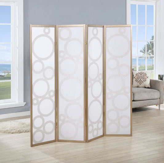 Arvada 4-Panel Wood Room Divider with Circle Pattern, Gold