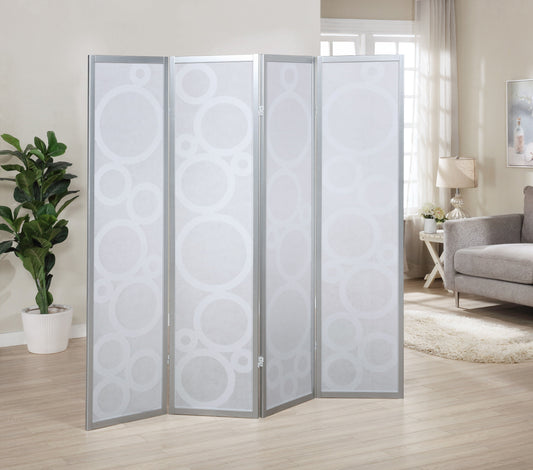 Arvada 4-Panel Wood Room Divider with Circle Pattern, Silver