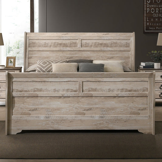 Imerland Contemporary White Wash Finish Sleigh Bed
