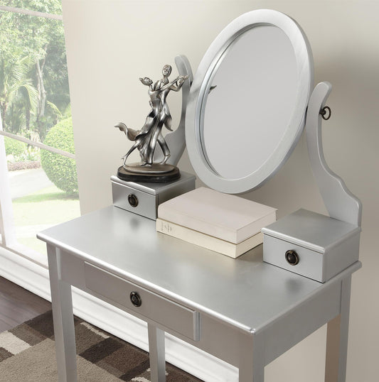 Ashley Silver Wood Makeup Vanity Table and Stool Set