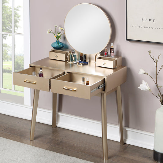 Moniys Wood Moniya Makeup Vanity Table and Stool Set, Gold