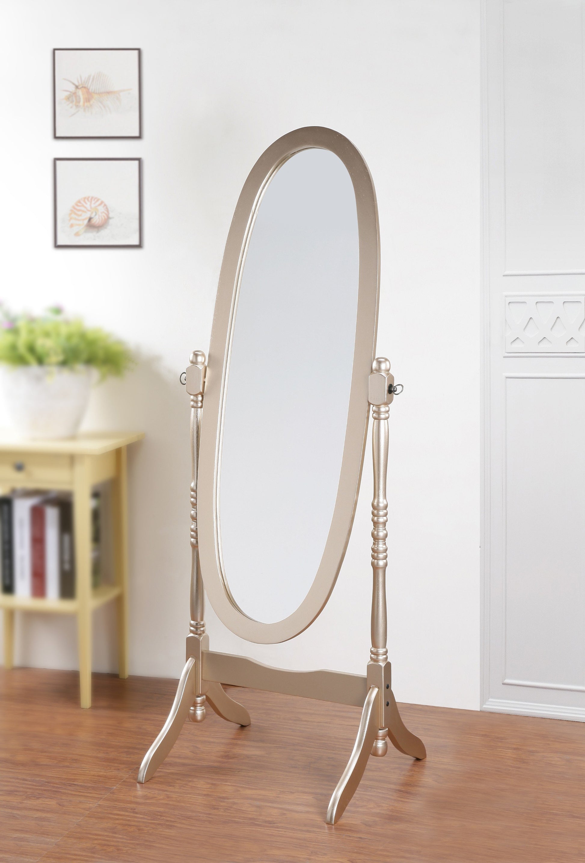 - Beautiful gold cheval-style mirror for traditional decor, tilts for full-body reflection