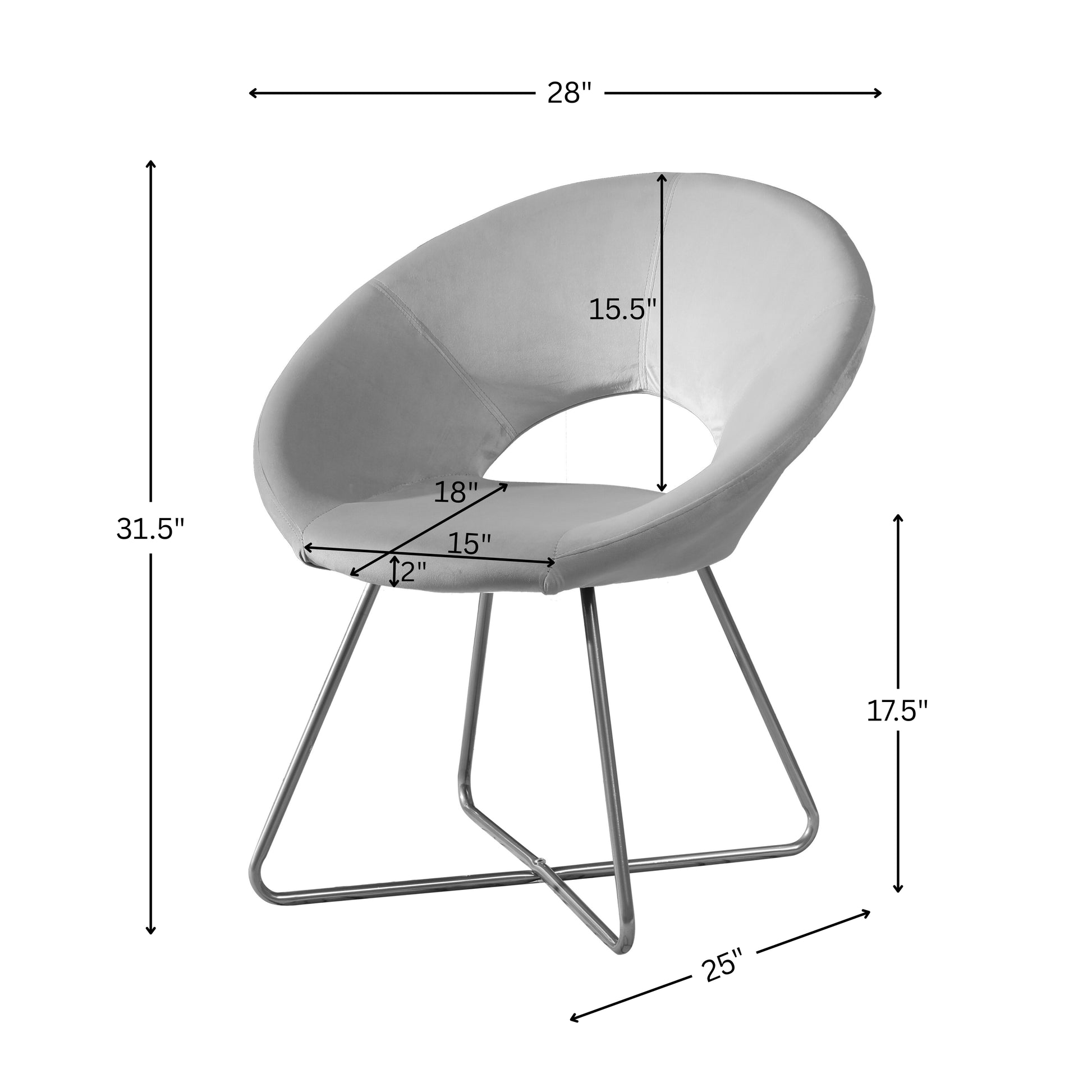 Seat Height: 17.5", seat width: 15", seat depth: 18", seat cushion thickness: 2"