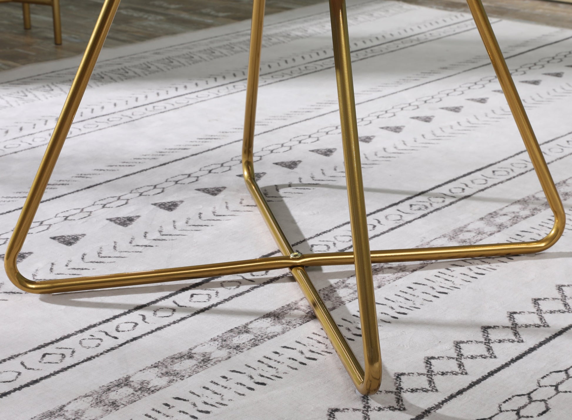- Sturdy metal sled frame finished in gold tone, plastic floor protector underneath to make your floor scratch-free