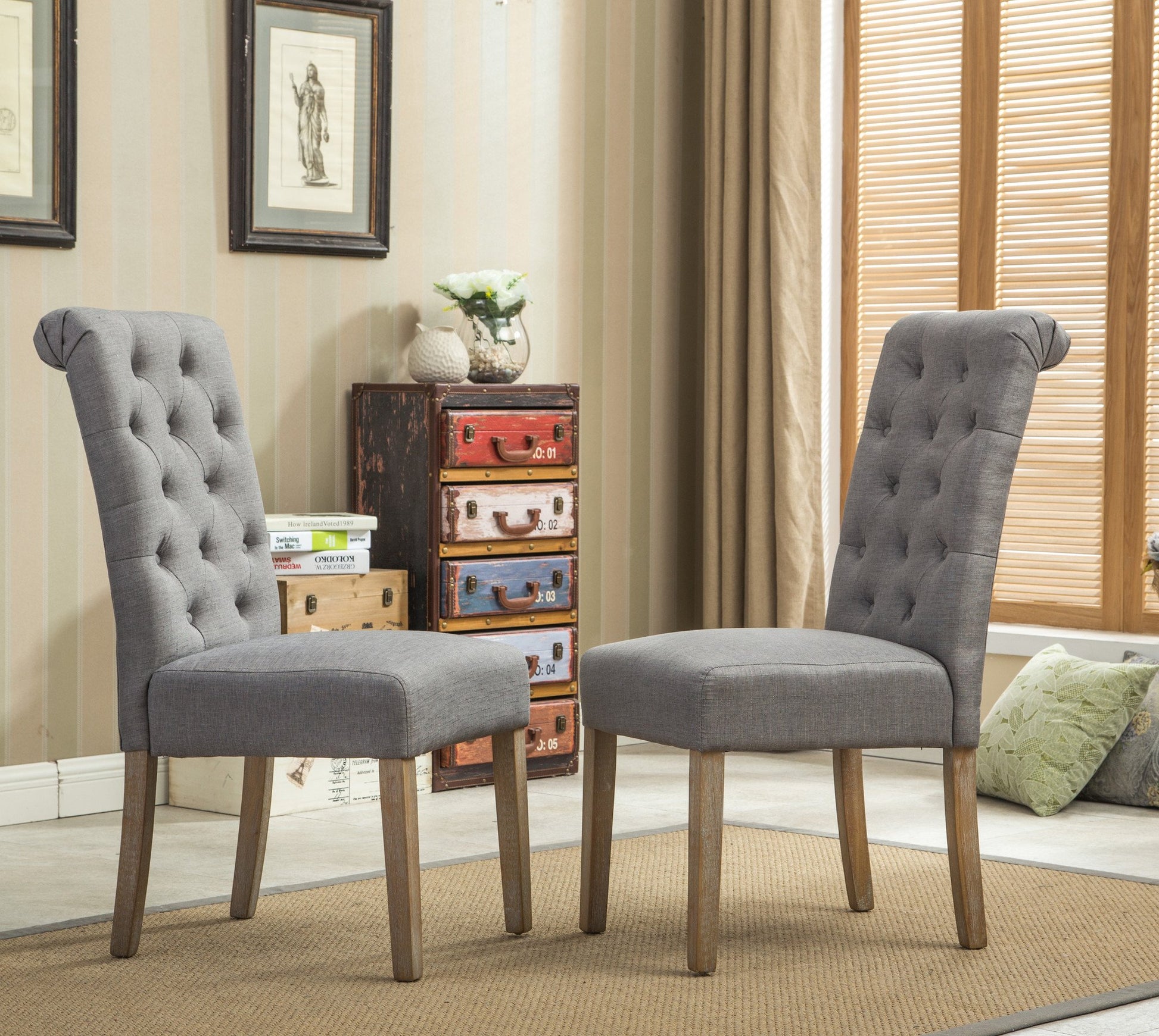 Habit Grey Solid Wood Tufted Parsons Dining Chair ,Set of 2