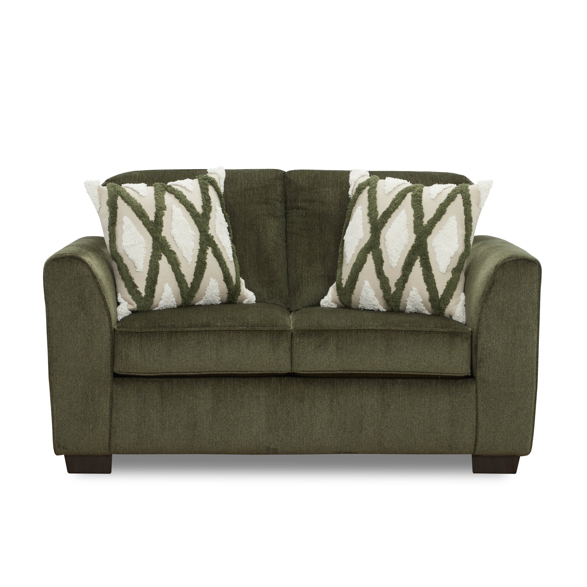 Roundhill Furniture Marvella Living Room Loveseat with Mosswood Chenille Upholstery and Textured Accent Pillows