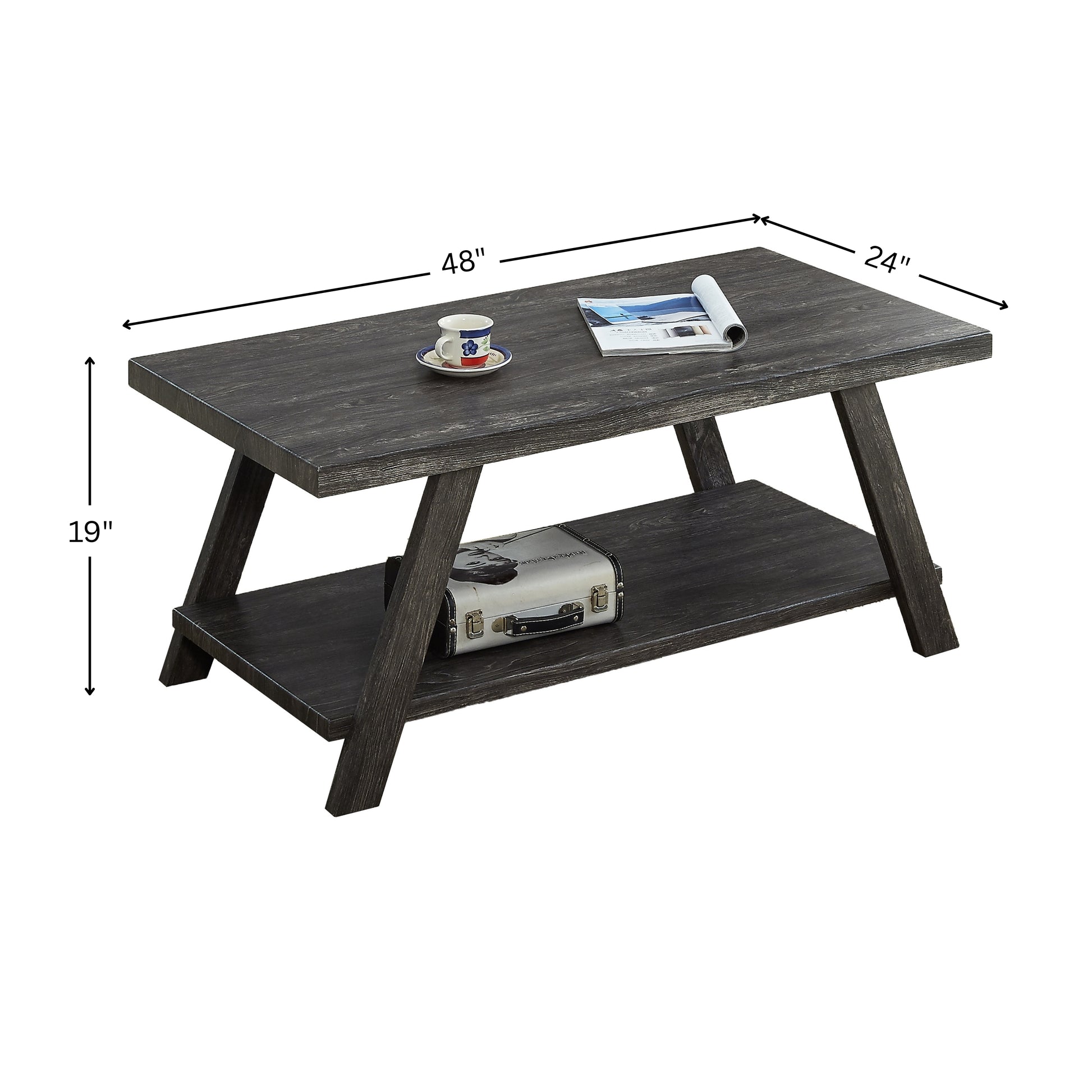 Athens Contemporary Replicated Wood Shelf Coffee Table in Charcoal Finish