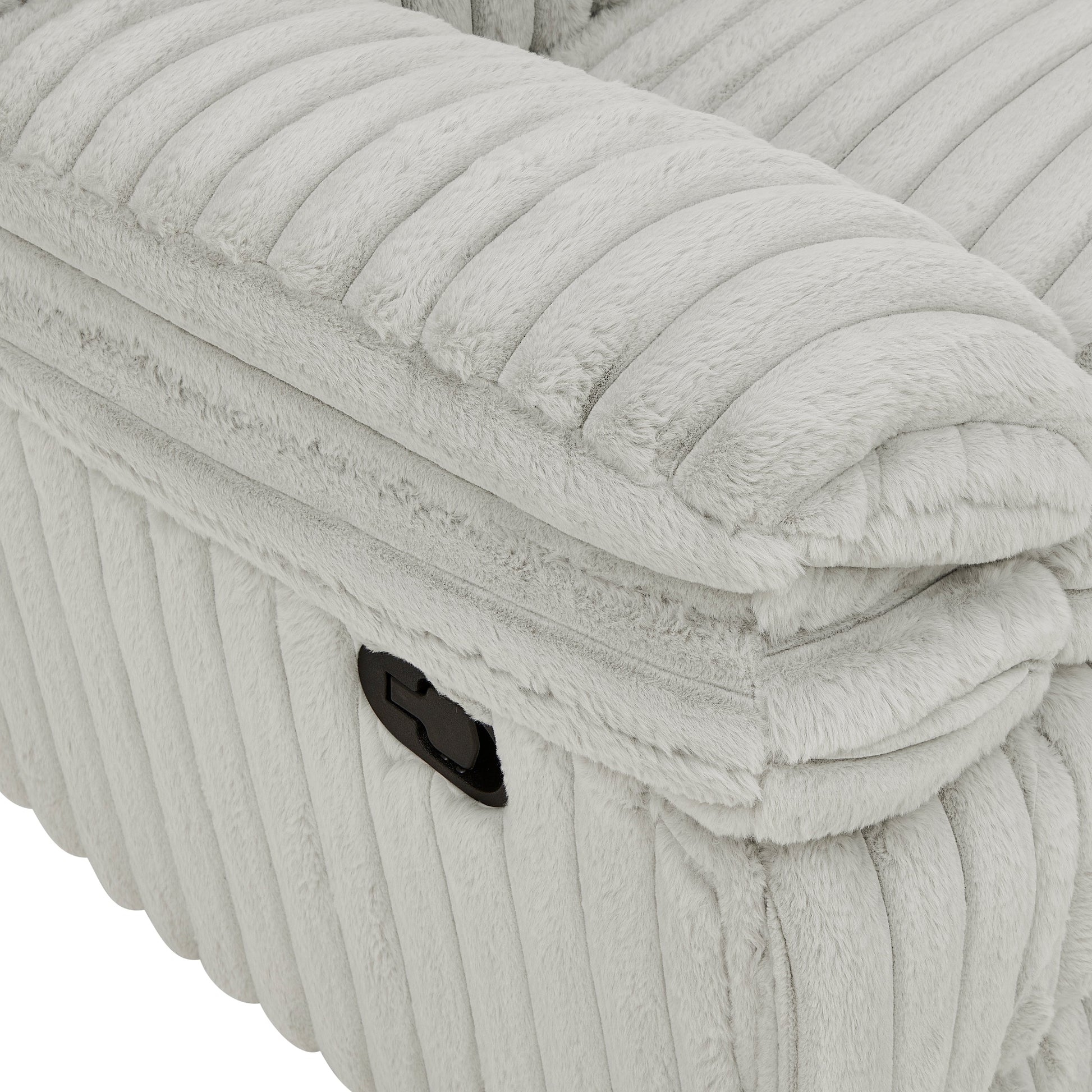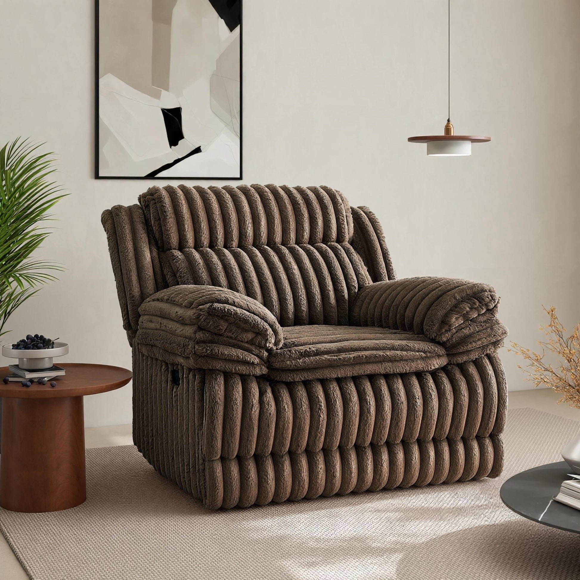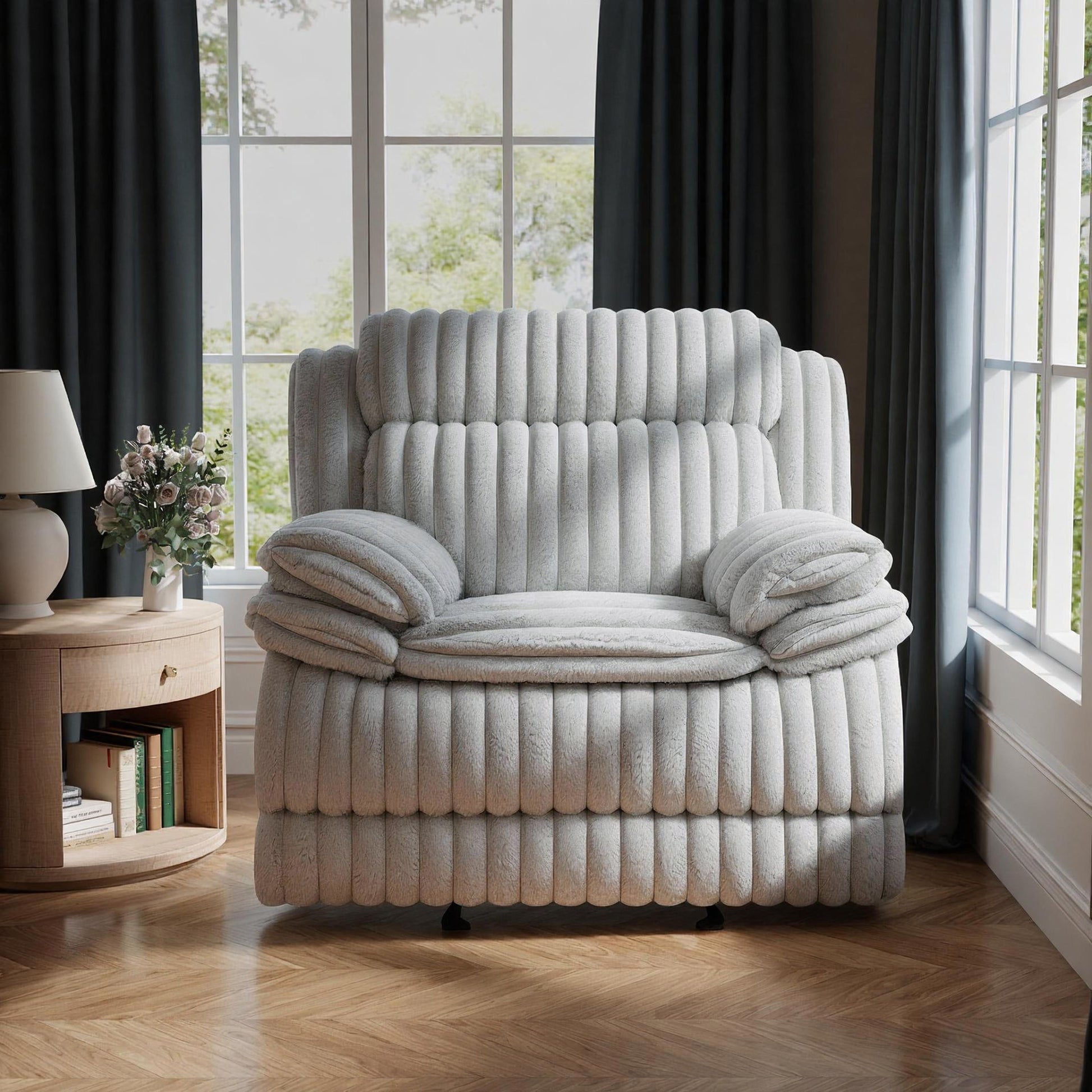 Sink into comfort with the Ardello Manual Recliner by Roundhill Furniture, where modern design meets ultimate relaxation. Upholstered in gray wide-wale corduroy, this recliner offers an irresistibly soft and cozy feel. Designed with a generously sized seat, pillow-top arms, and premium foam cushioning supported by coil springs, it provides a plush, cloud-like seating experience. The smooth manual reclining mechanism lets you kick back with ease, making it the perfect spot to unwind after a long day or enjoy a weekend movie marathon.