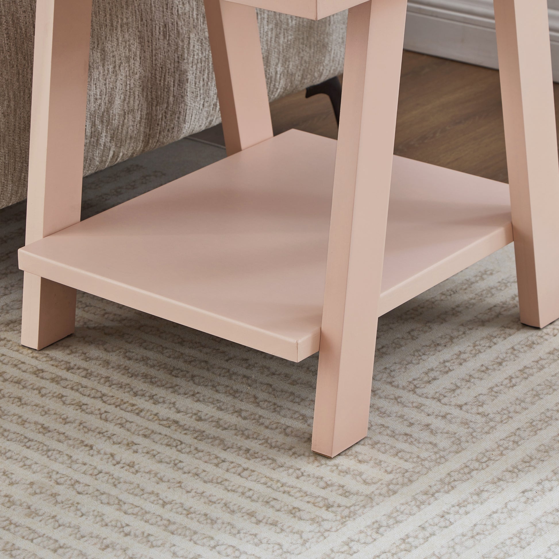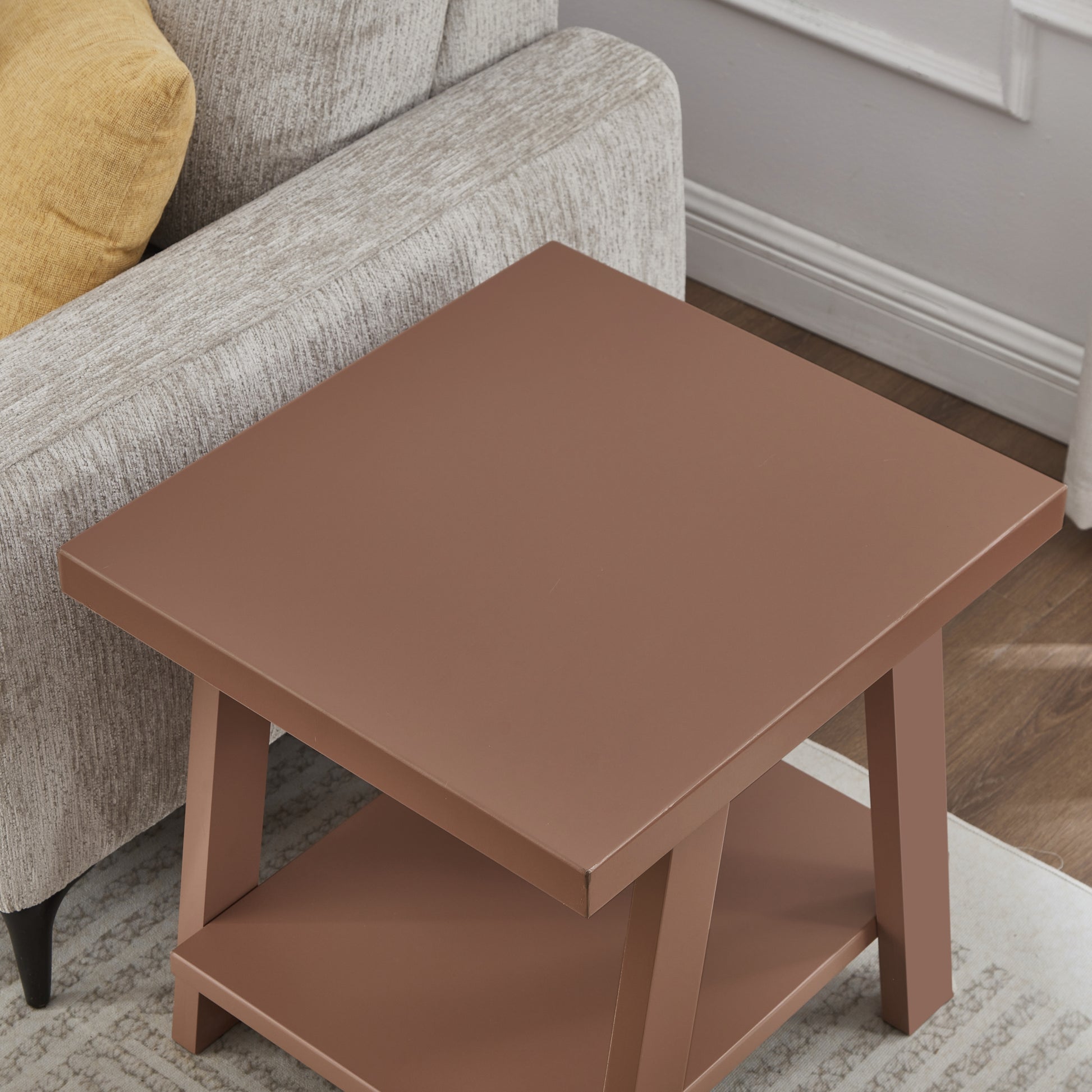 The Athens Contemporary Wood Shelf End Table provides your room with a lodge-style feel that's at once stunning and welcoming. The compact frame of this table is built from high-quality manufactured wood with wide-angled legs. The bottom shelf is perfect for storing magazines and newspapers or displaying your favorite collectibles. Inspired by sawhorses and the simplicity of some craftsman-era tables, this end table fits with rustic or contemporary styles.