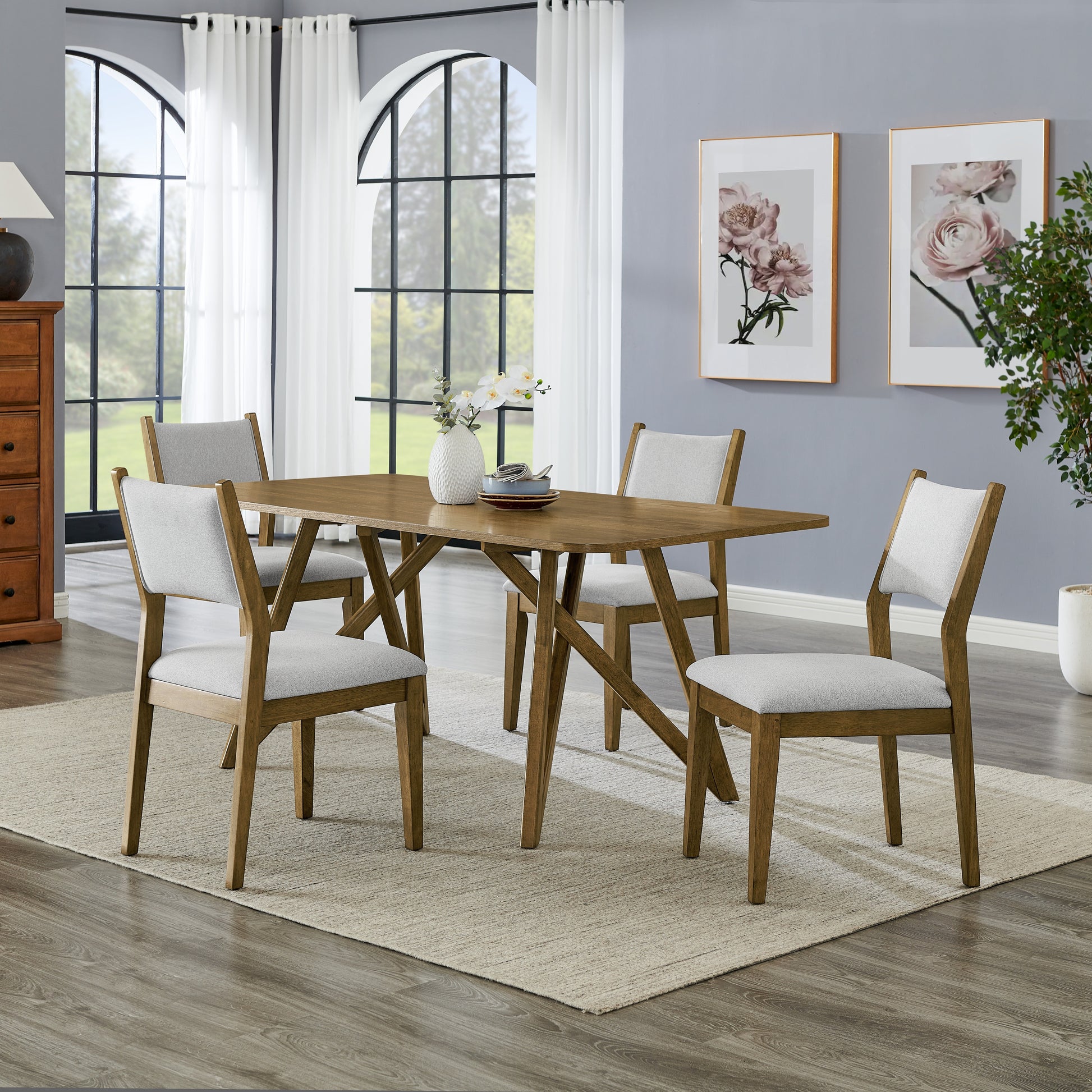 Roundhill Furniture Avery 5-Piece Dining Set, Tripod-Cross Dining Table with 4 Stylish Chairs, Light Oak