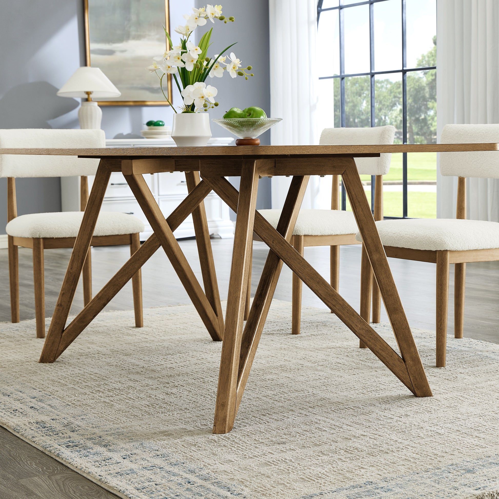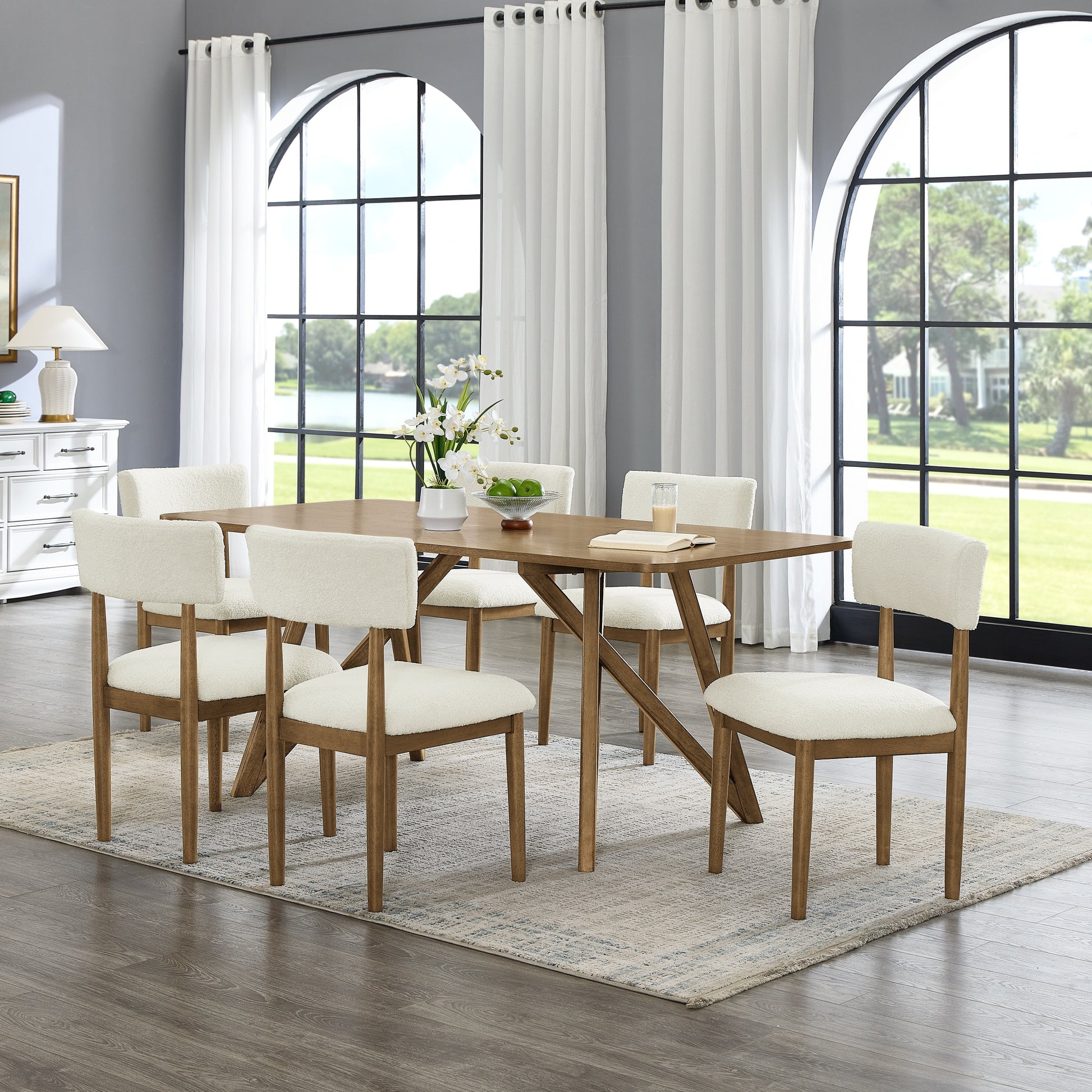 Roundhill Furniture Axler 7-Piece Dining Set, Tripod-Cross Dining Table with 6 Stylish Chairs, Light Oak