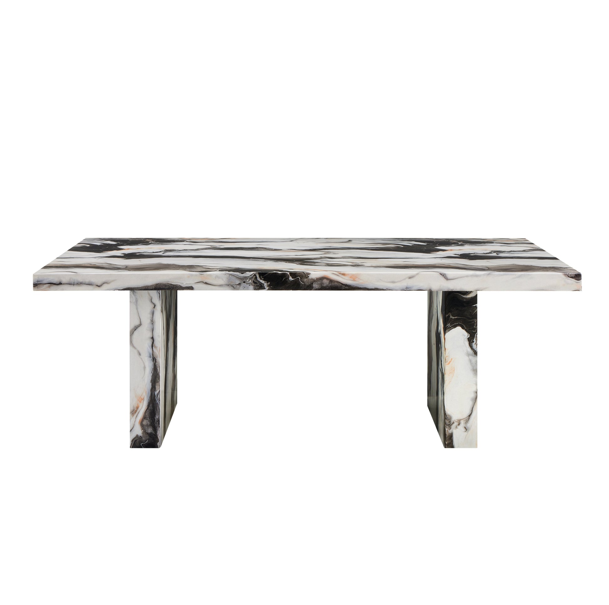 - Sophisticated Statement – Faux marble tabletop with veining adds luxury to any dining space.