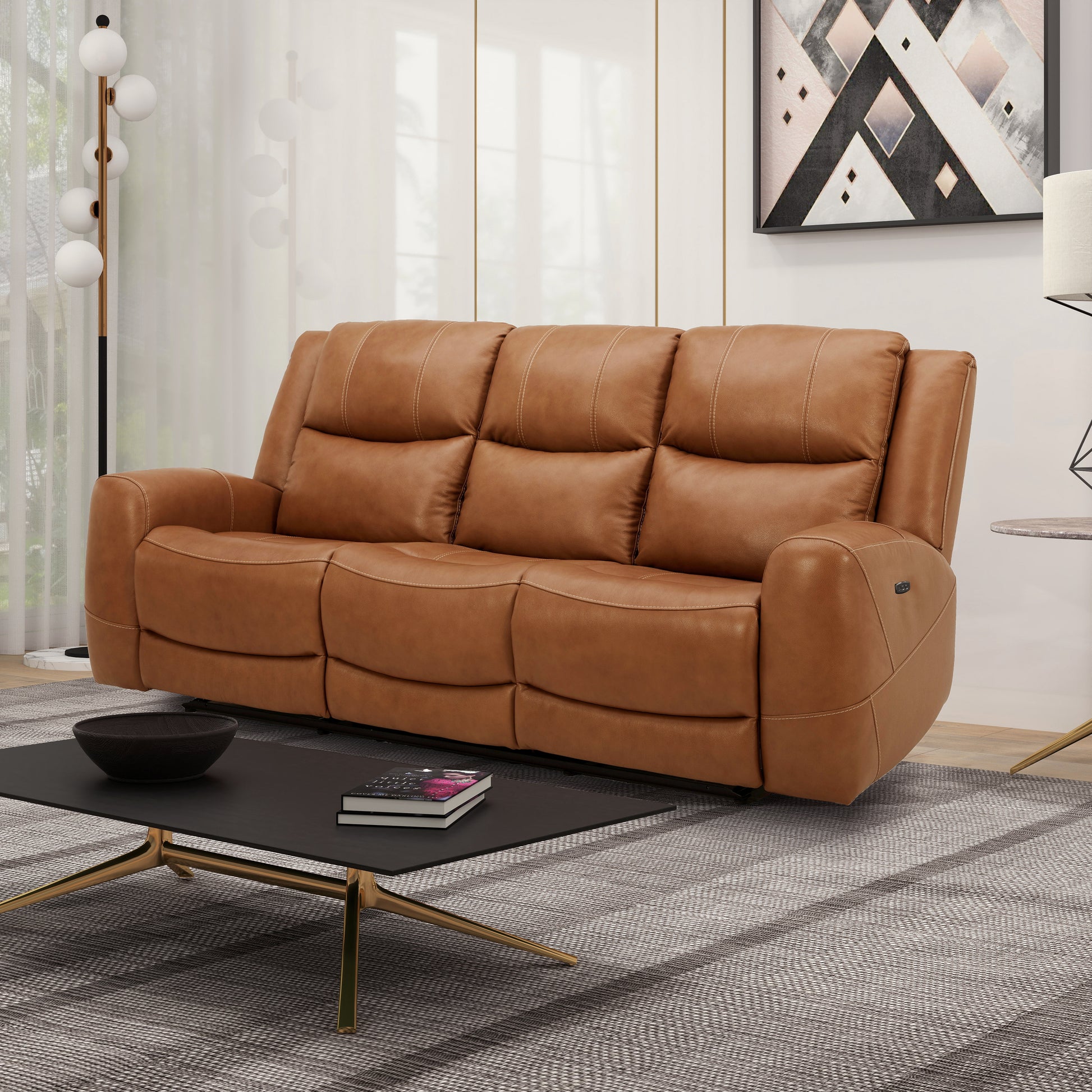 The Roundhill Furniture Cozura Leather Power Recling Living Room Collection brings luxurious comfort and modern style to your living room. The spacious sofa features dual manual reclining seats, operated easily by a side handle, allowing you to unwind and relax with ease. Upholstered in premium leather, the Cozura sofa is both elegant and durable, offering a high-end look without compromising on comfort. With its dual power reclining mechanism and adjustable headrests, you can customize your seating experience with the touch of a button. The loveseat is equipped with a convenient storage console, providing space for remotes, books, or beverages. The Dacron-filled cushions, paired with sinuous spring construction, deliver exceptional support and plush seating. Designed with a solid wood frame for strength and stability, this sofa set is available in two contemporary shades—Chesapeake Blue and Silverado Butternut—making it the perfect centerpiece for any modern living space.