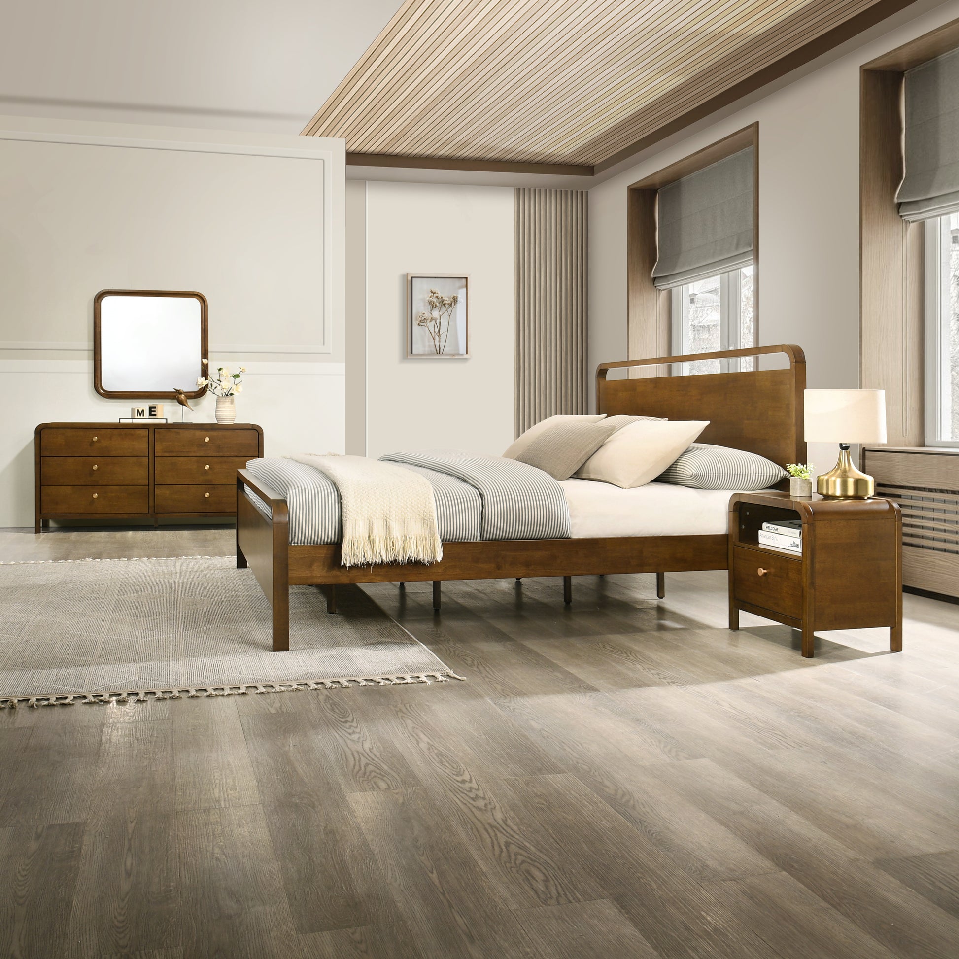 - Warm Walnut Finish – Features a rich walnut tone that enhances natural wood grain, adding warmth and timeless appeal that complements a wide range of bedroom décor styles.