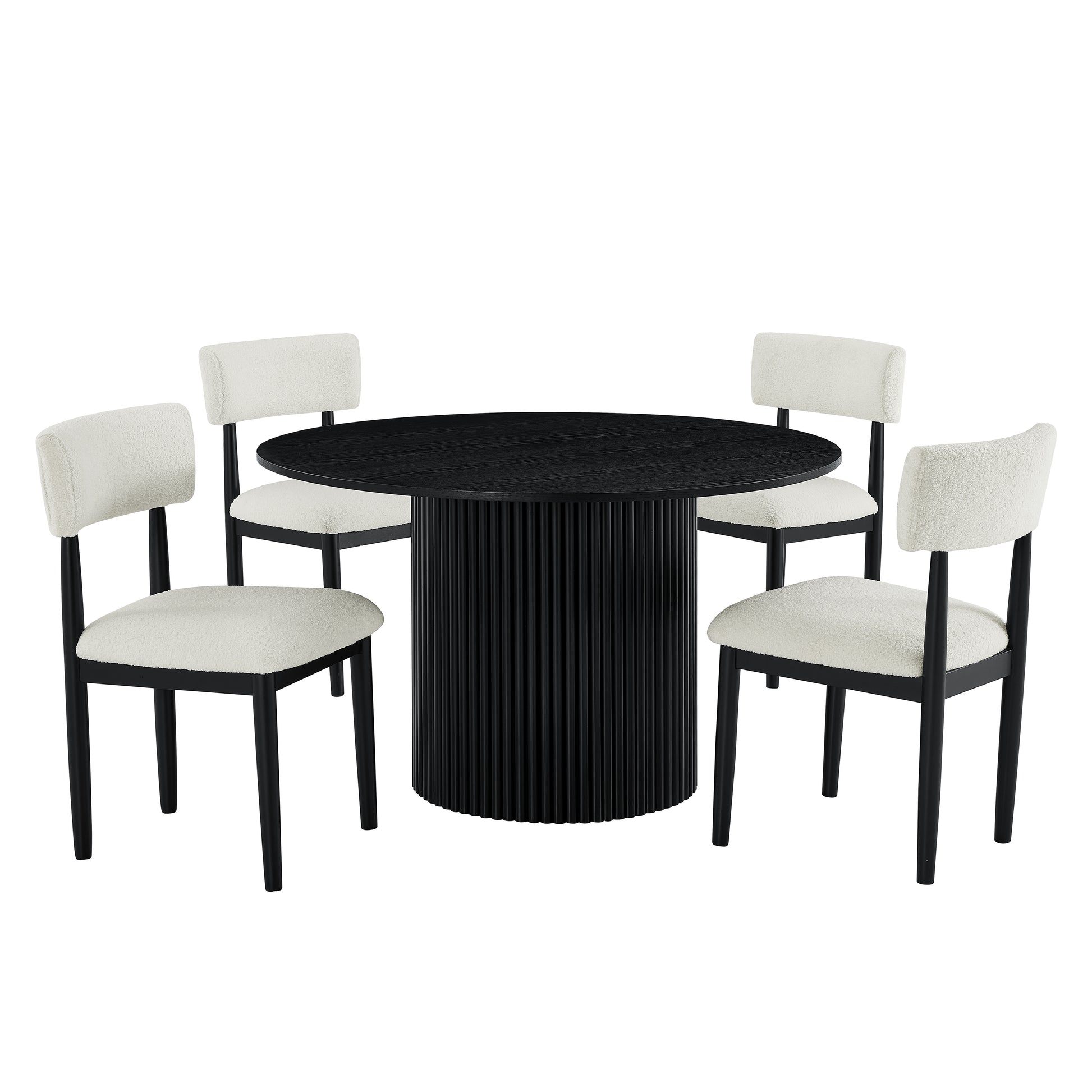 Roundhill Furniture Henriet 5-Piece Round Dining Set, Pedestal Dining Table with 4 Stylish Chairs, Black