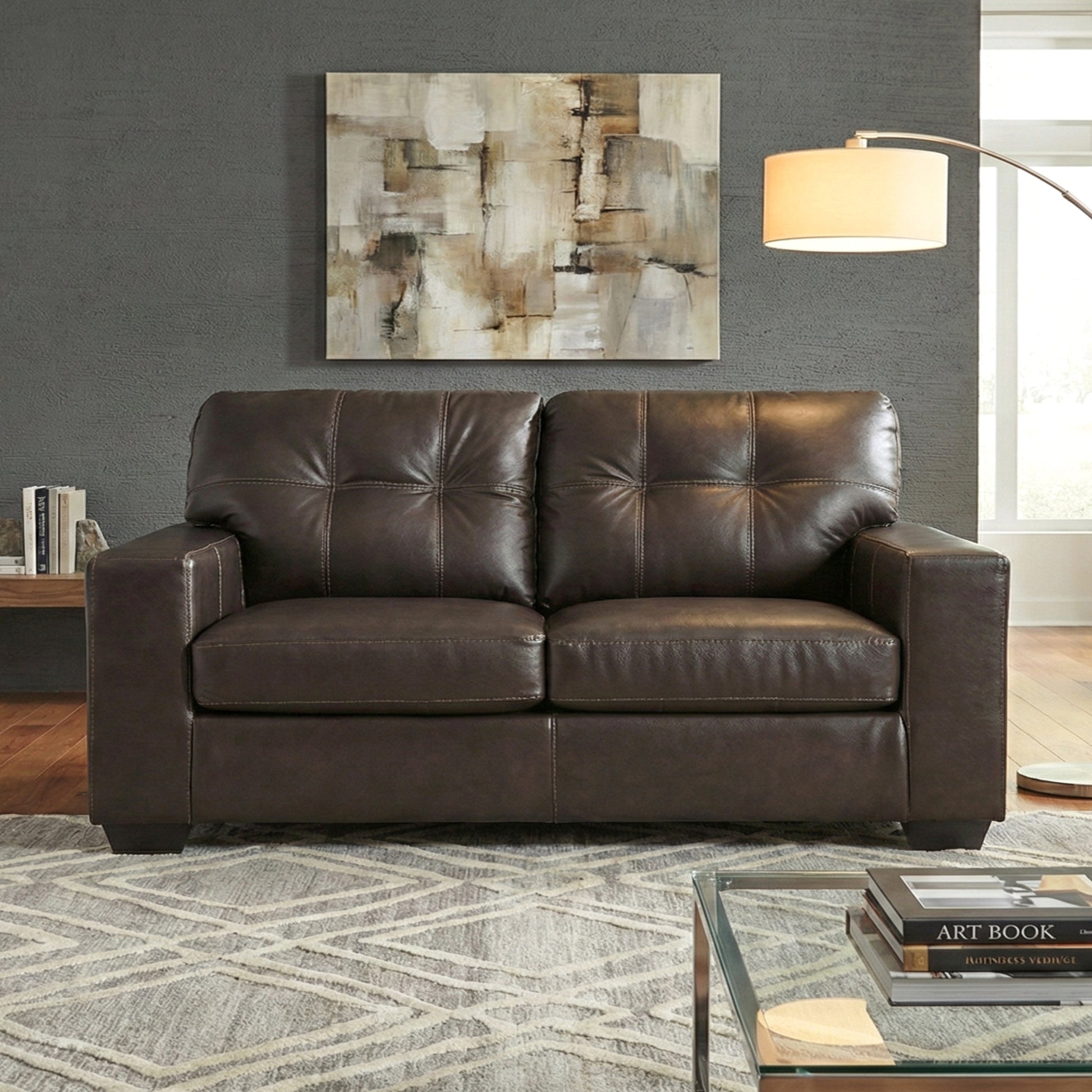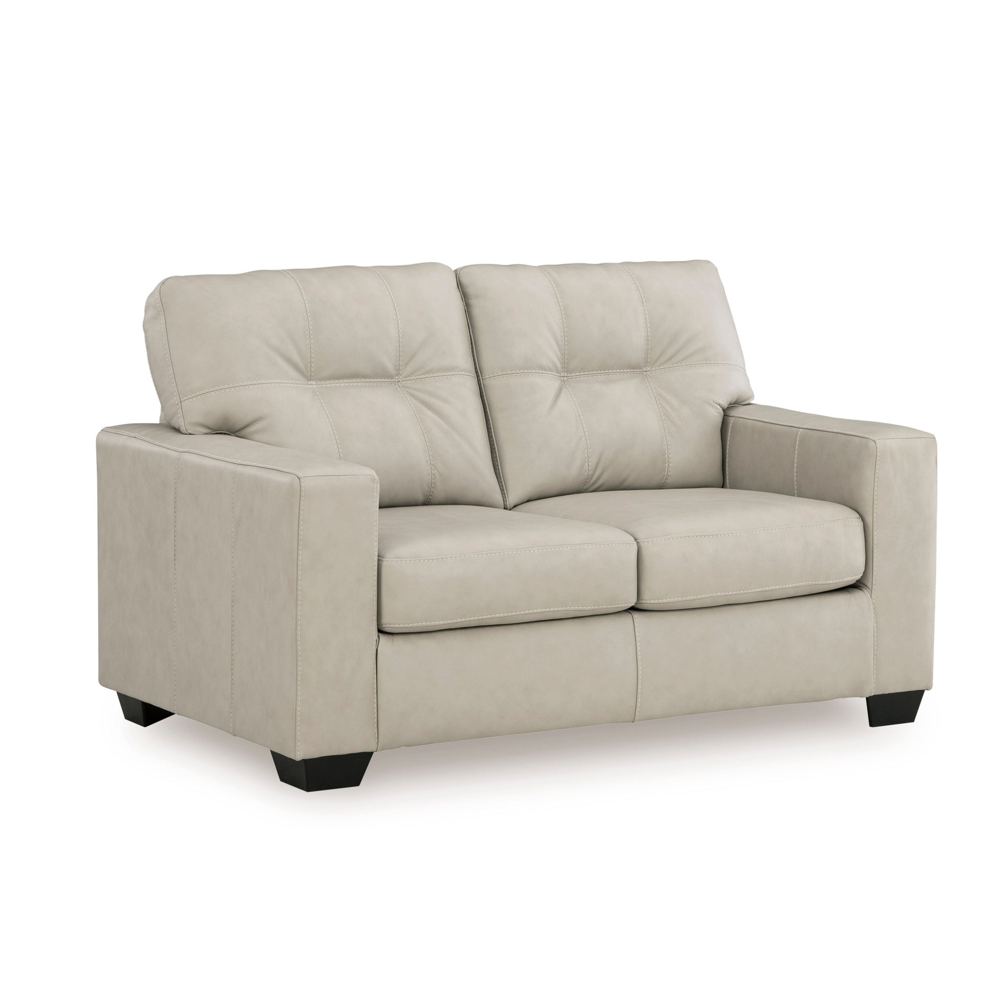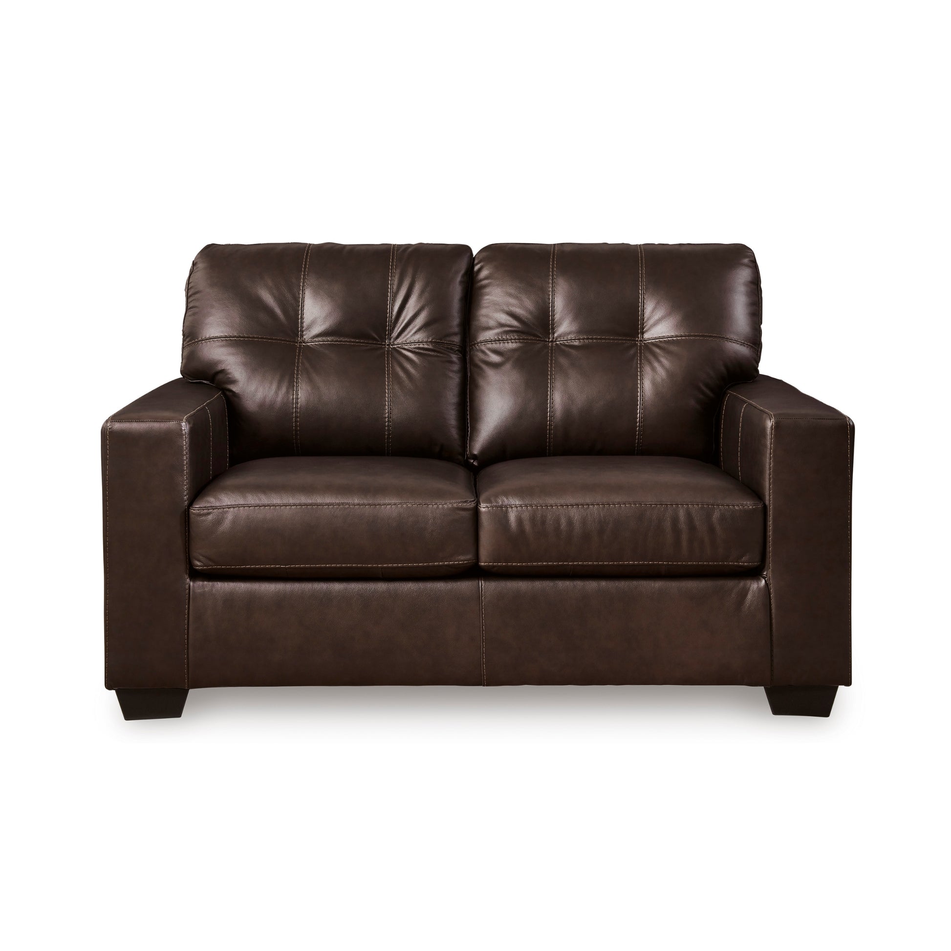 - [STYLISH LEATHER LOVESEAT]: This contemporary upholstered loveseat features a clean-lined silhouette and premium tufted details. Available in Dark Brown or Bone White, it blends skillfully matched leather and faux leather to offer a luxurious look and feel that enhances any living room decor.