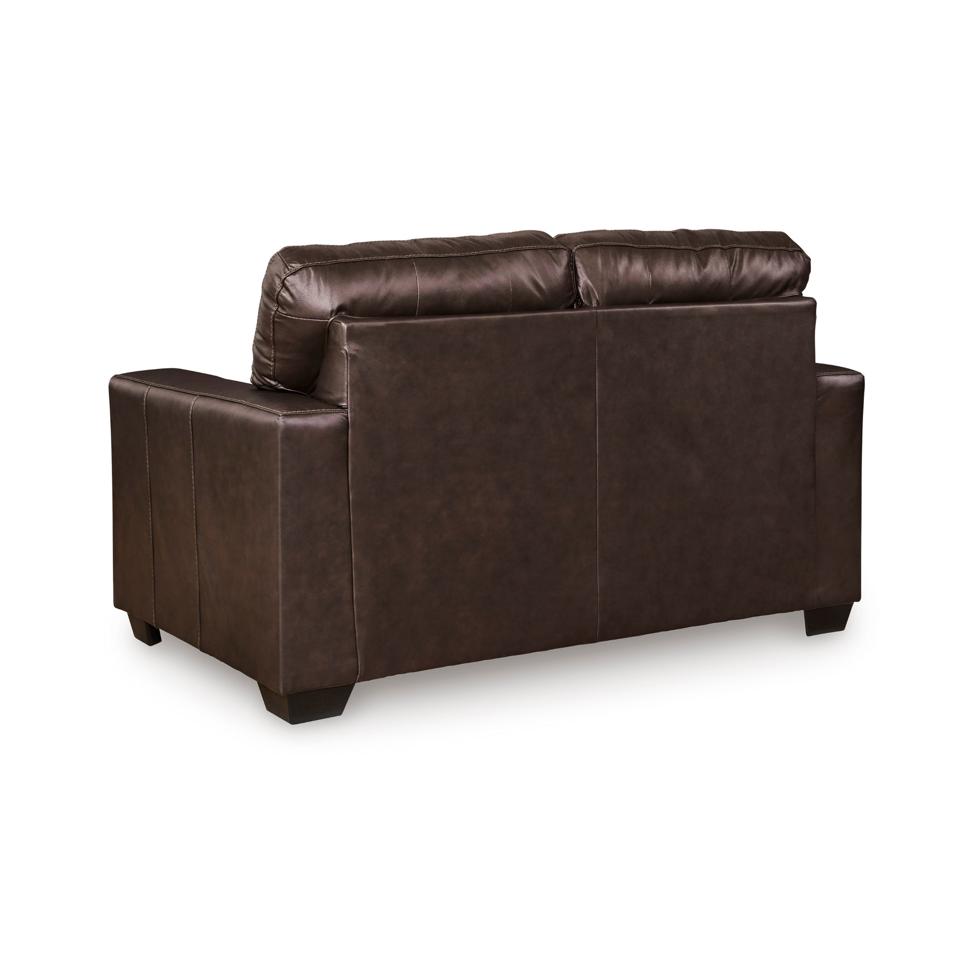 Complete your living room seating arrangement with the Roundhill Furniture Holmes Leather Upholstered Loveseat. This versatile piece combines contemporary clean lines with affordable luxury, making it a perfect match for both classic and modern homes. Crafted with 100% top-grain leather on the cushion top and skillfully matched faux leather on the sides, it offers a high-end feel and lasting durability. The corner-blocked frame provides a sturdy foundation, while the high-quality foam cushion wrapped in poly fiber ensures a firm yet comfortable surface.