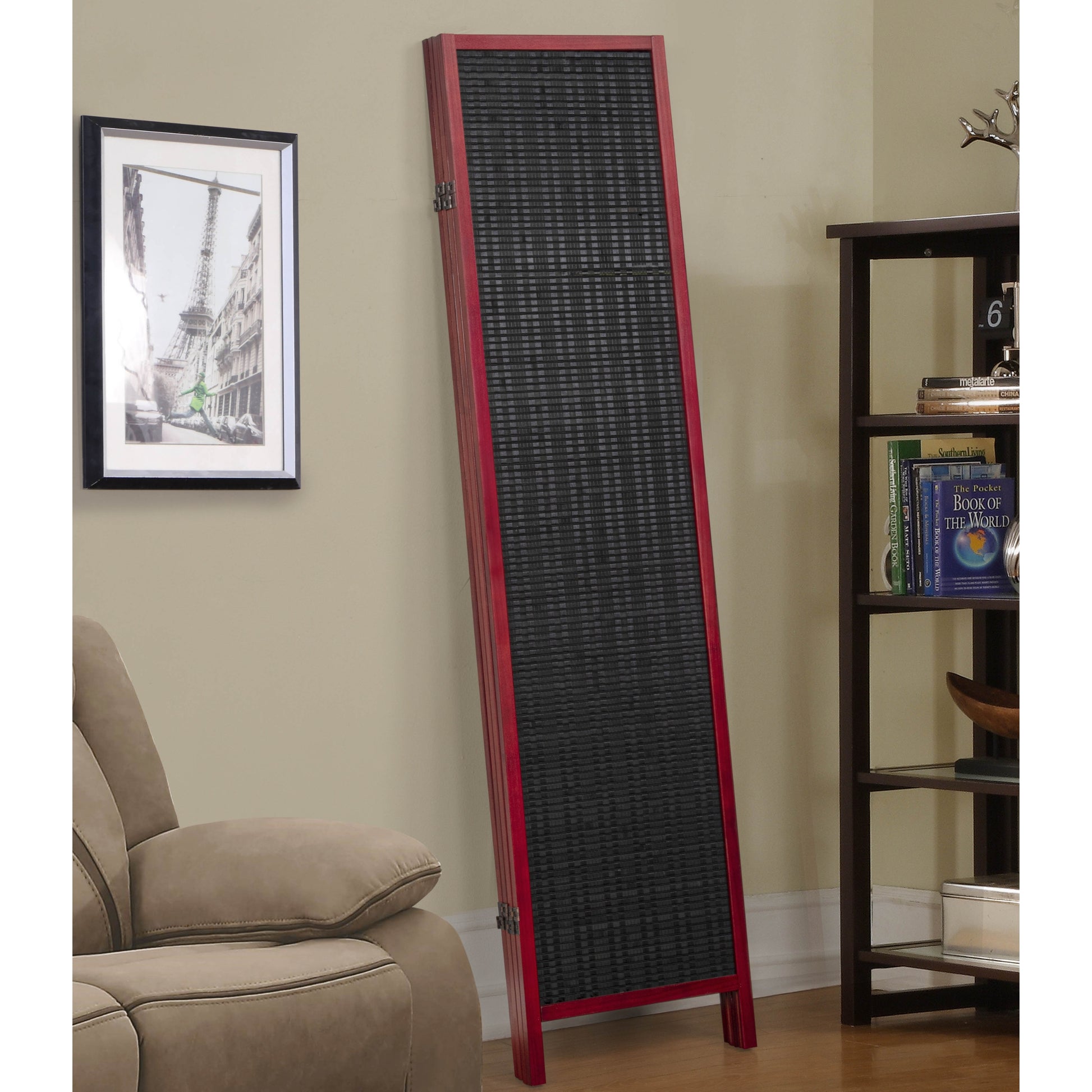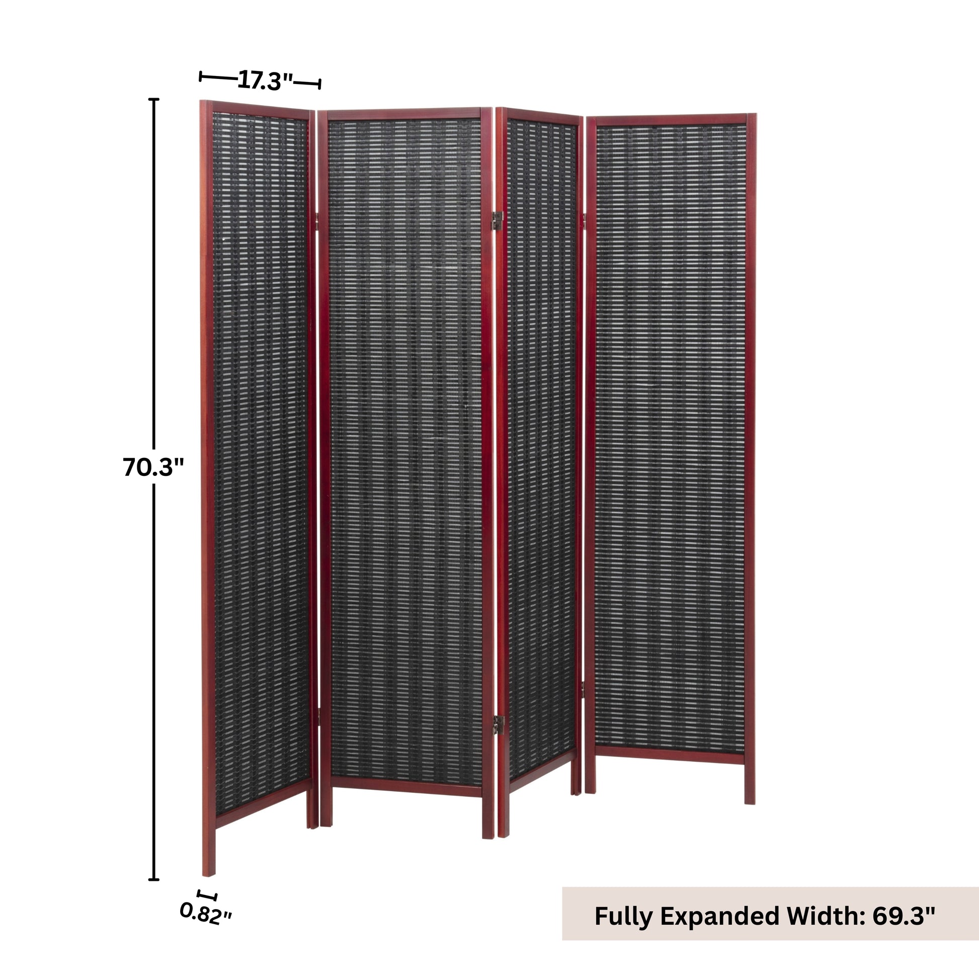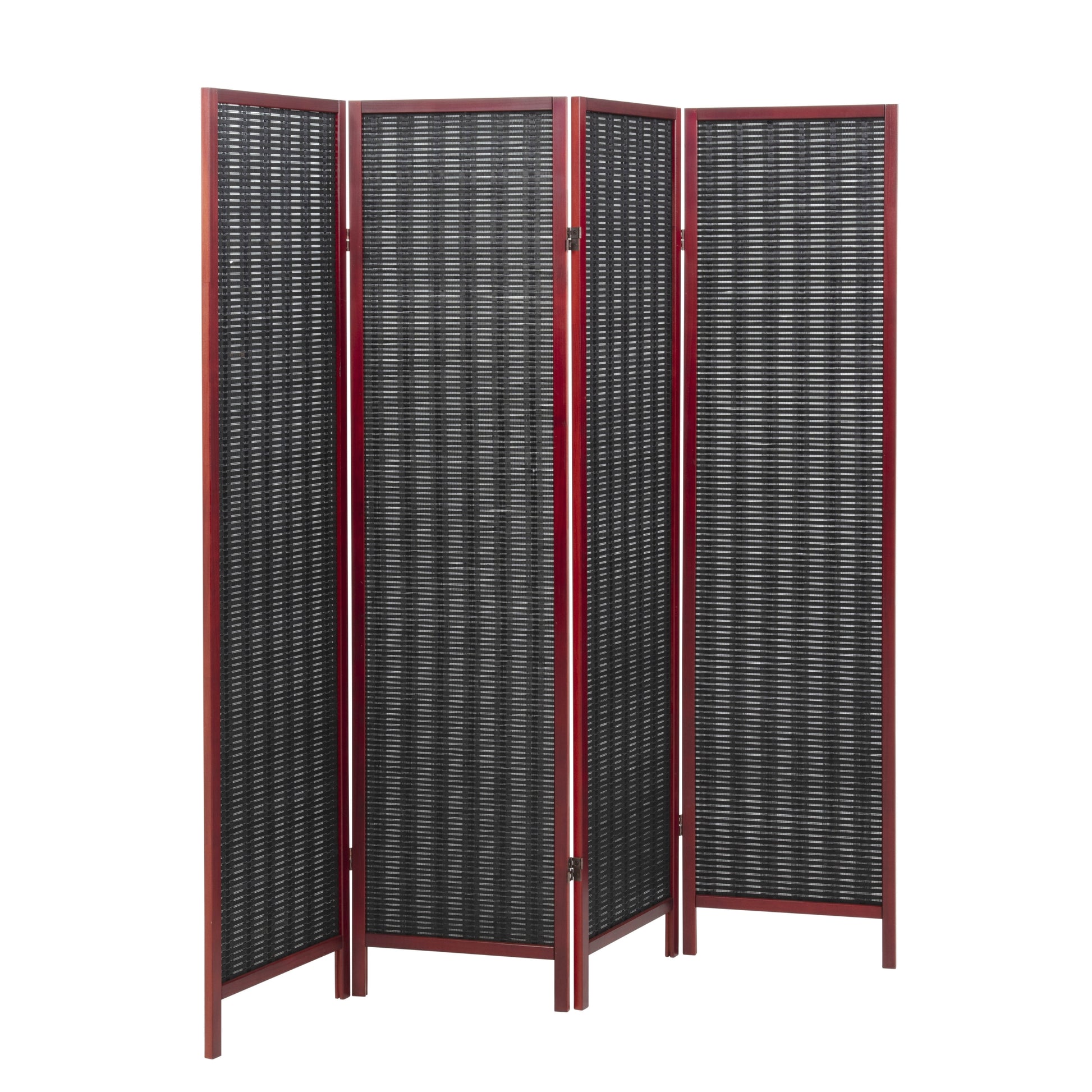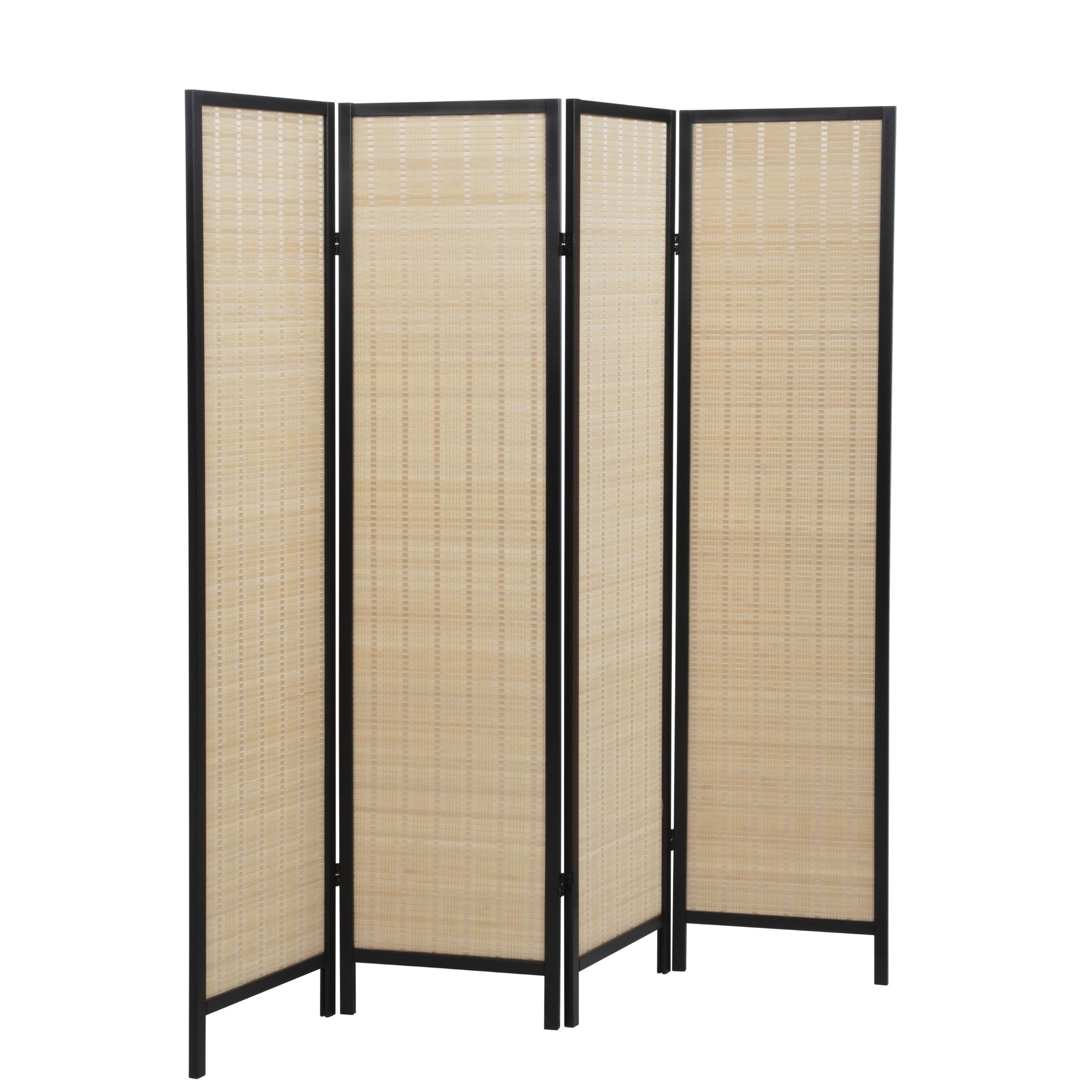The Roundhill Furniture Inkwell 4-Panel Bamboo Room Divider is a stylish and functional solution for creating privacy or defining spaces in any room. Crafted from durable New Zealand Pine wood and Bamboo, it ensures lasting strength and resilience for everyday use. The bold finish highlights the bamboo woven design, adding depth and texture to enhance your home or office decor. Featuring four hinged panels that fold compactly for easy storage and portability, this divider adapts effortlessly to your layout needs. Perfect for dividing living spaces, creating cozy nooks, or simply adding a decorative accent, the Inkwell Room Divider combines practical functionality with timeless design.