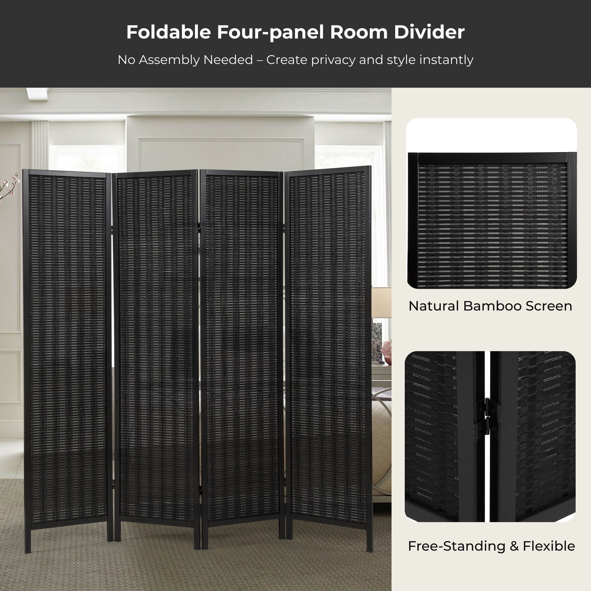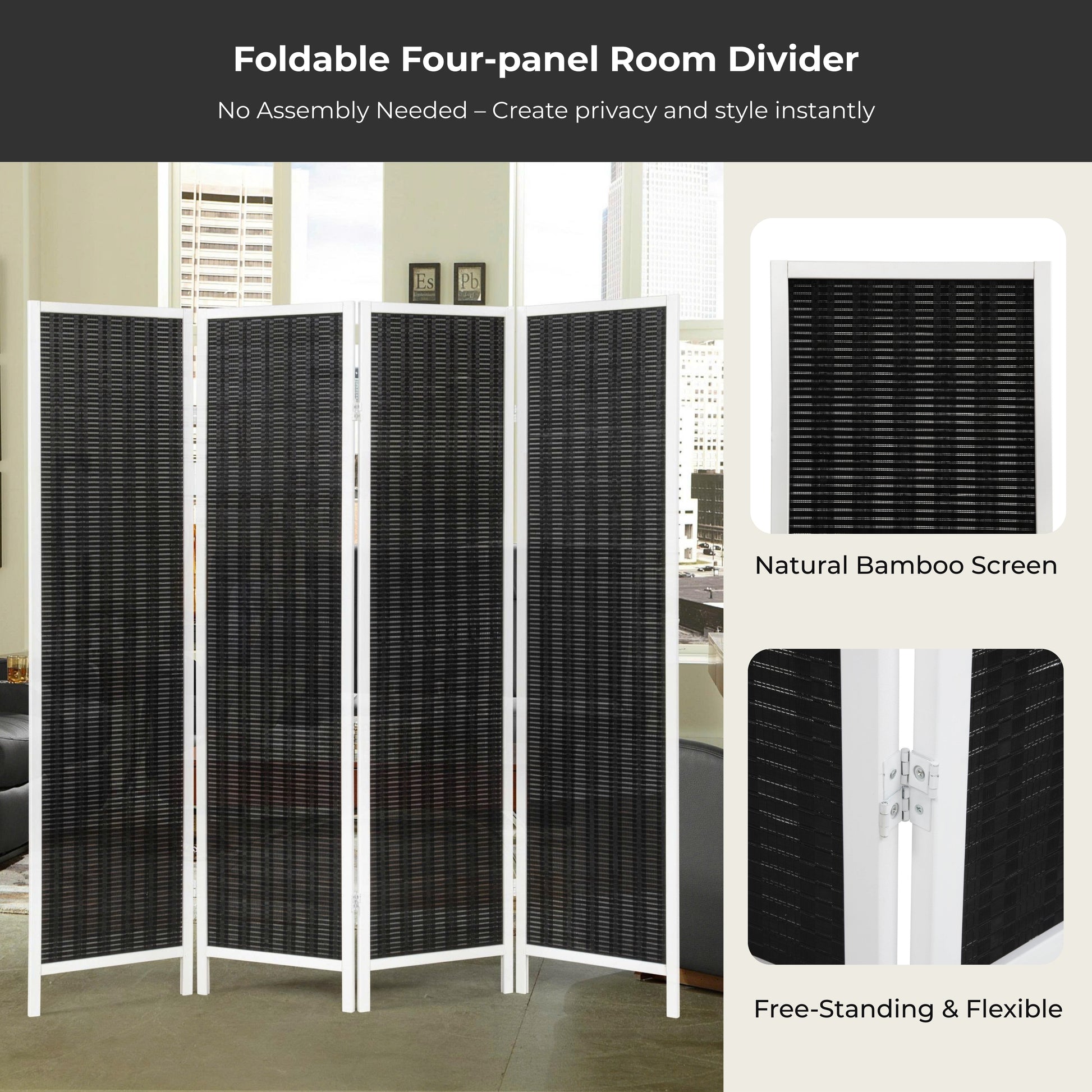 - [VERSATILE & FOLDABLE]: This 4-panel folding screen creates instant privacy or room separation with flexible positioning. Hinged panels adjust smoothly from straight to zigzag layouts, offering stability and versatility. Ideal for indoor use, it fits seamlessly in offices, bedrooms, or living rooms.