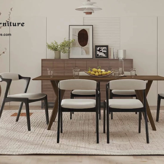 - Complete Dining Set: Includes a rectangular walnut-finished table and four upholstered chairs for a cohesive, stylish look.