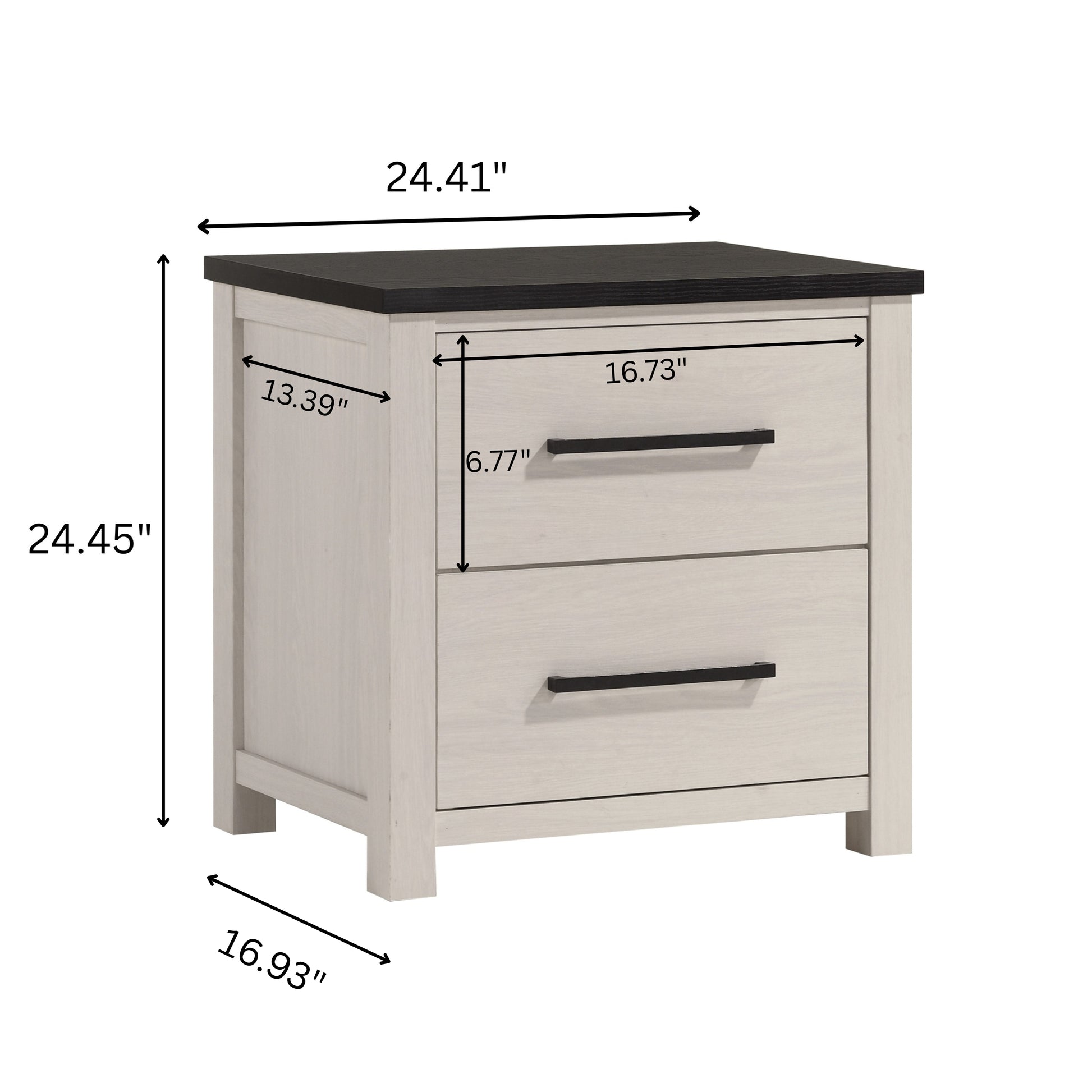 The Realynn 2-Drawer Nightstand combines timeless design and everyday functionality, making it the perfect bedside companion. Its off-white finish with a black top creates a chic two-tone look that complements any d??cor. Featuring two spacious drawers, it provides ample storage for books, electronics, or other essentials, helping you keep your space neat and organized. Matte black metal handles add a sleek, modern touch, while the high-quality manufactured wood ensures durability. Compact yet practical, this nightstand brings elegance and convenience to bedrooms or guest rooms.