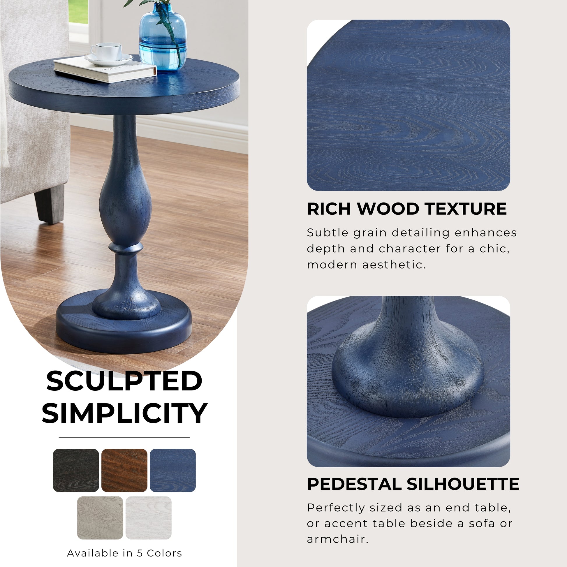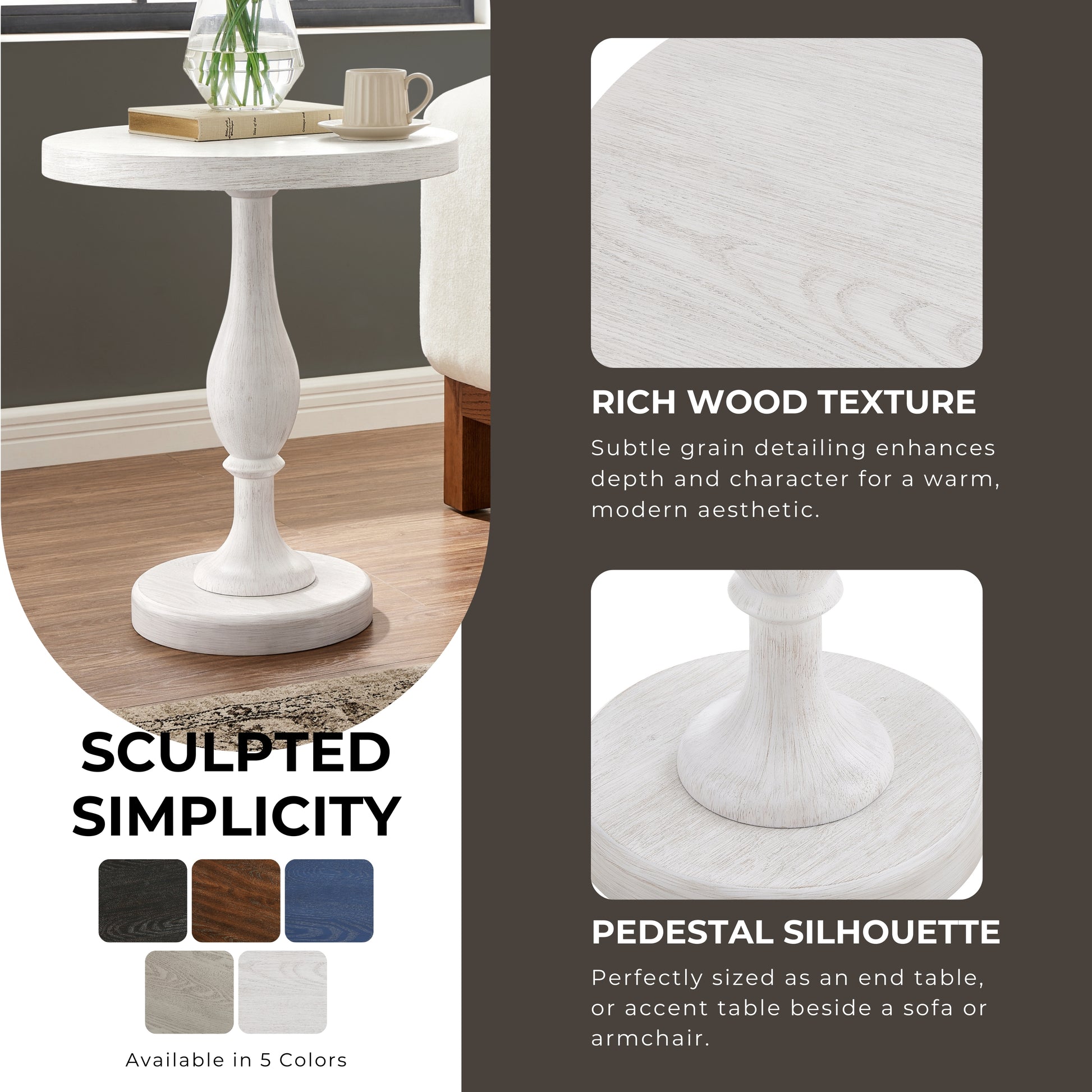 - Solid Rubberwood Pedestal Base – The sturdy rubberwood pedestal provides reliable stability and balanced support, creating a dependable side table for daily living.