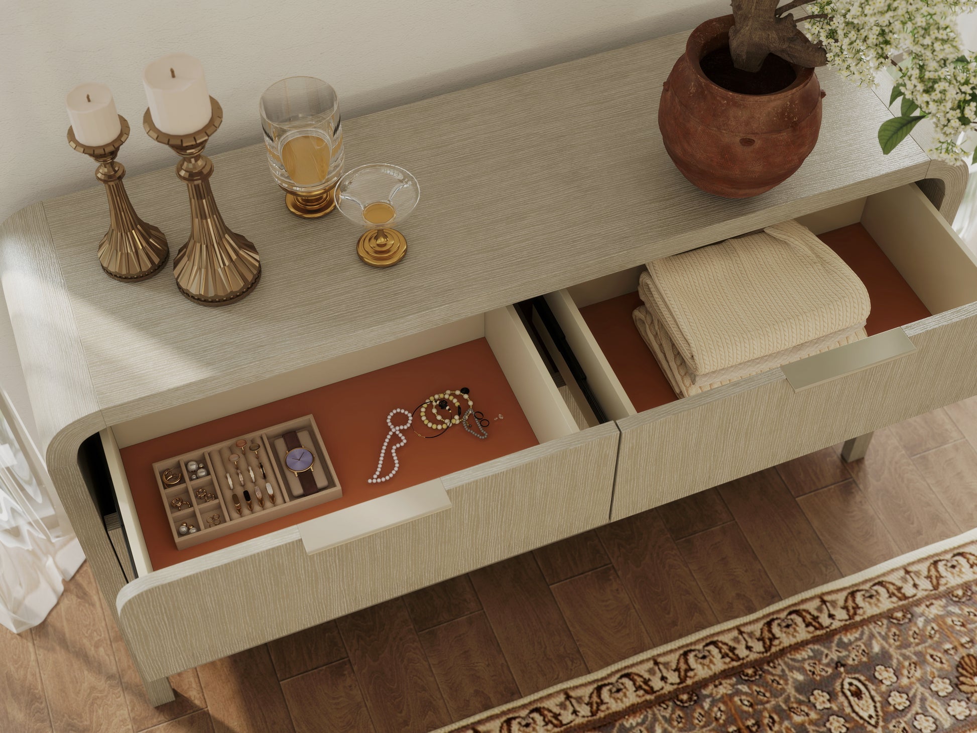 - Premium Features Felt-lined top drawers and ball-bearing glides ensure both protection and smooth performance.