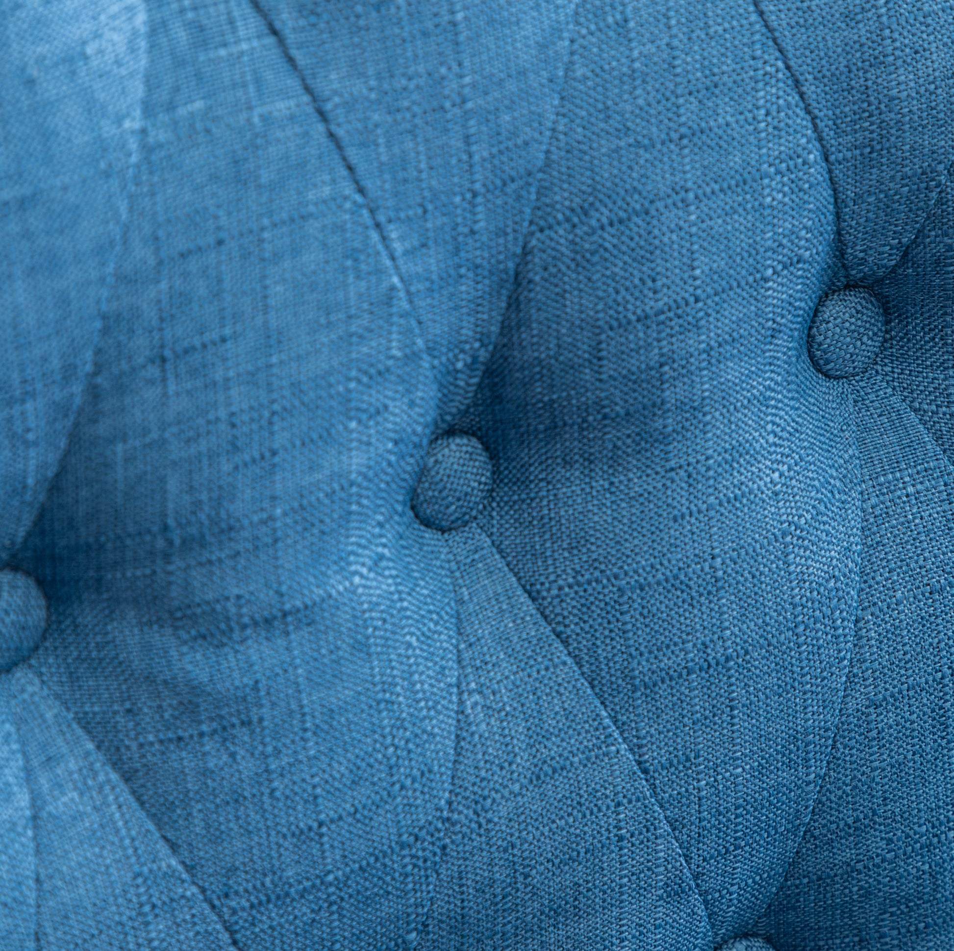 Siena Counter Height Button Tufted Back Solid Wood Stools, Set of 2, Blue