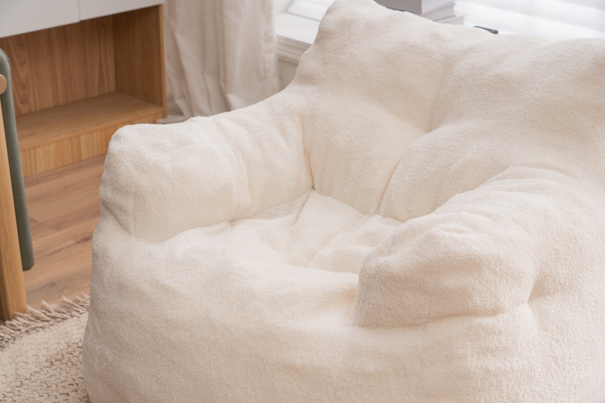 Soft Tufted Foam Bean Bag Chair With Teddy Fabric Ivory White