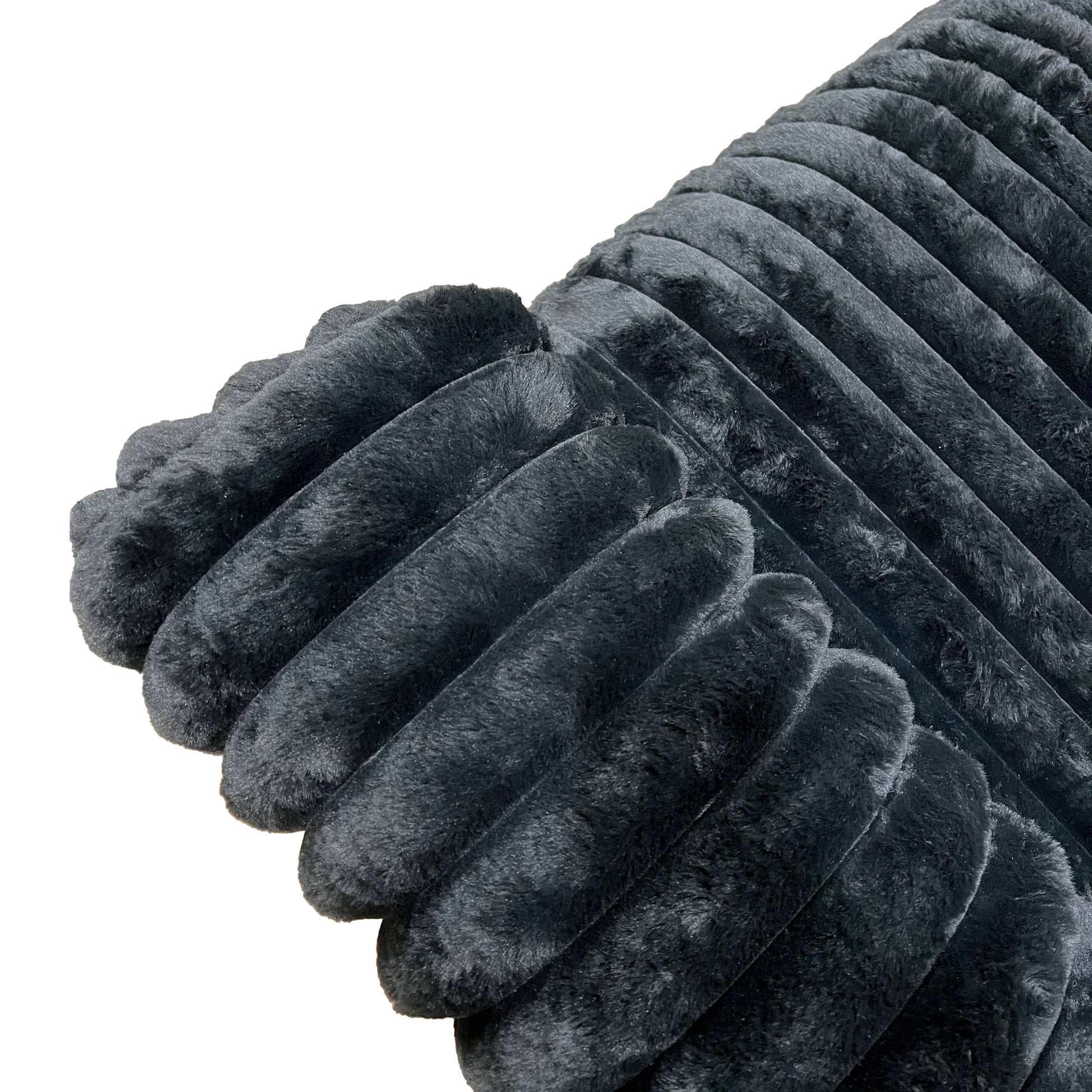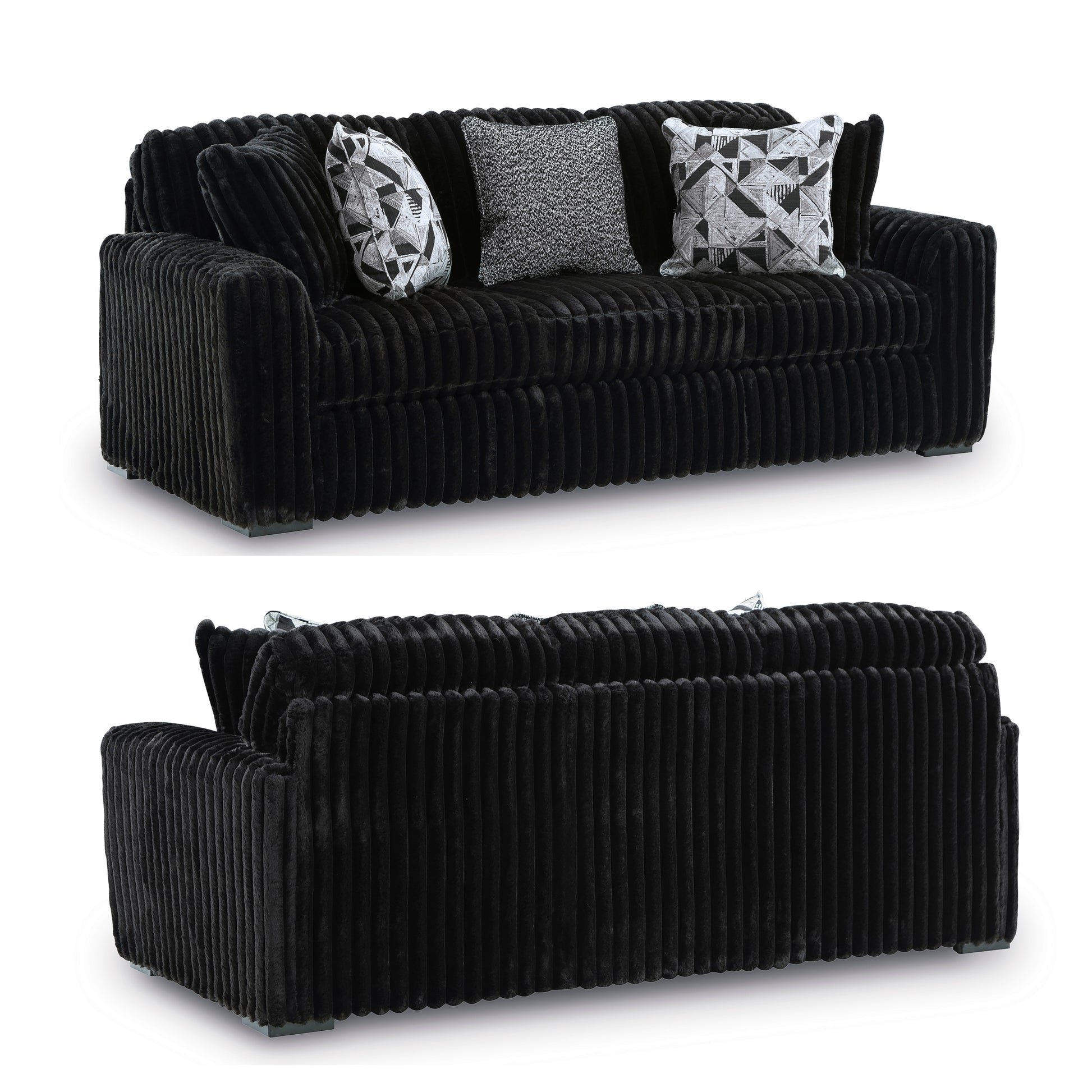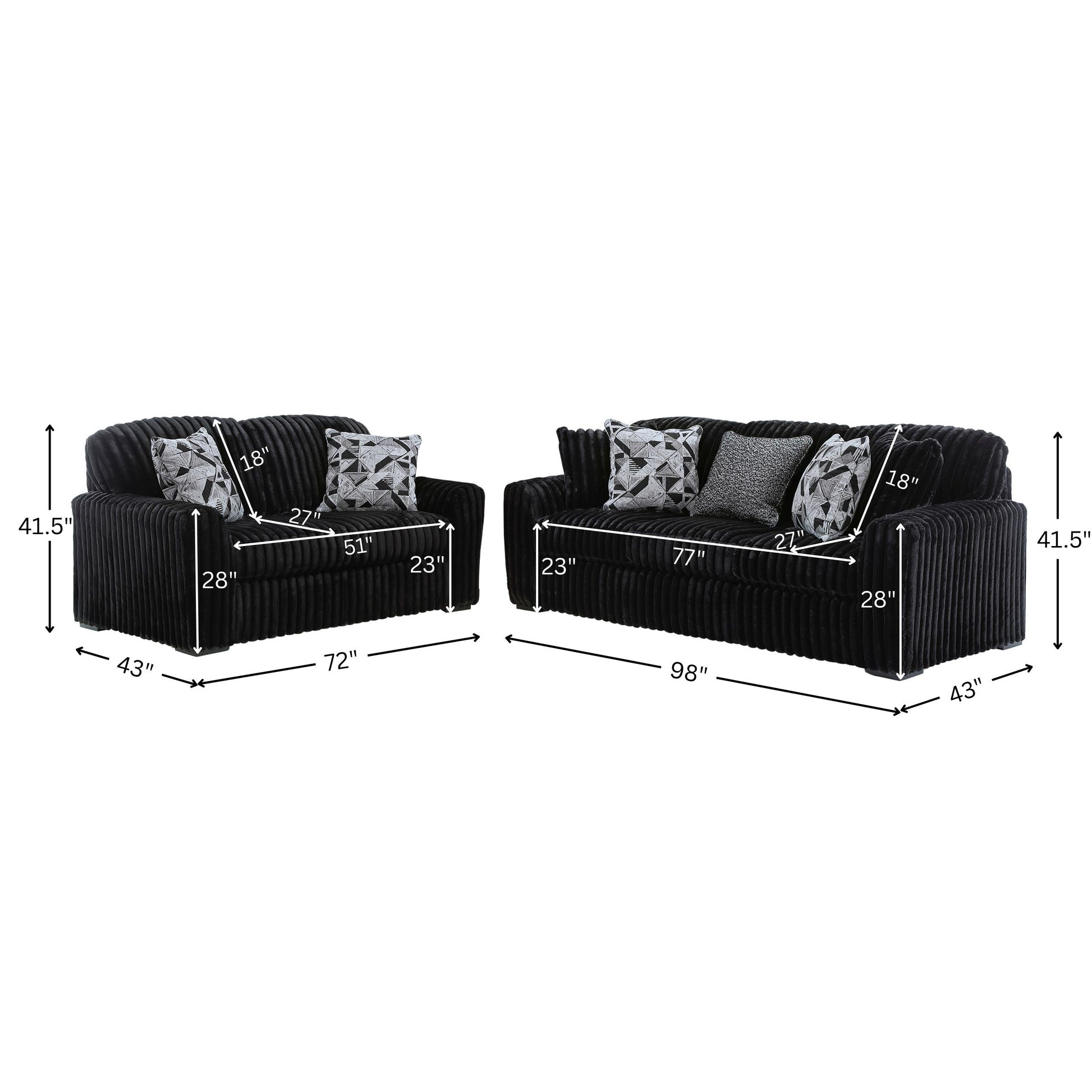 - Modern Cozy Style: Wrapped in luxurious onyx black corduroy for a bold yet cozy look; features attached back cushions, reversible seat cushions, and nine large 24" accent pillows; set on low-profile faux wood legs for a sleek finish.