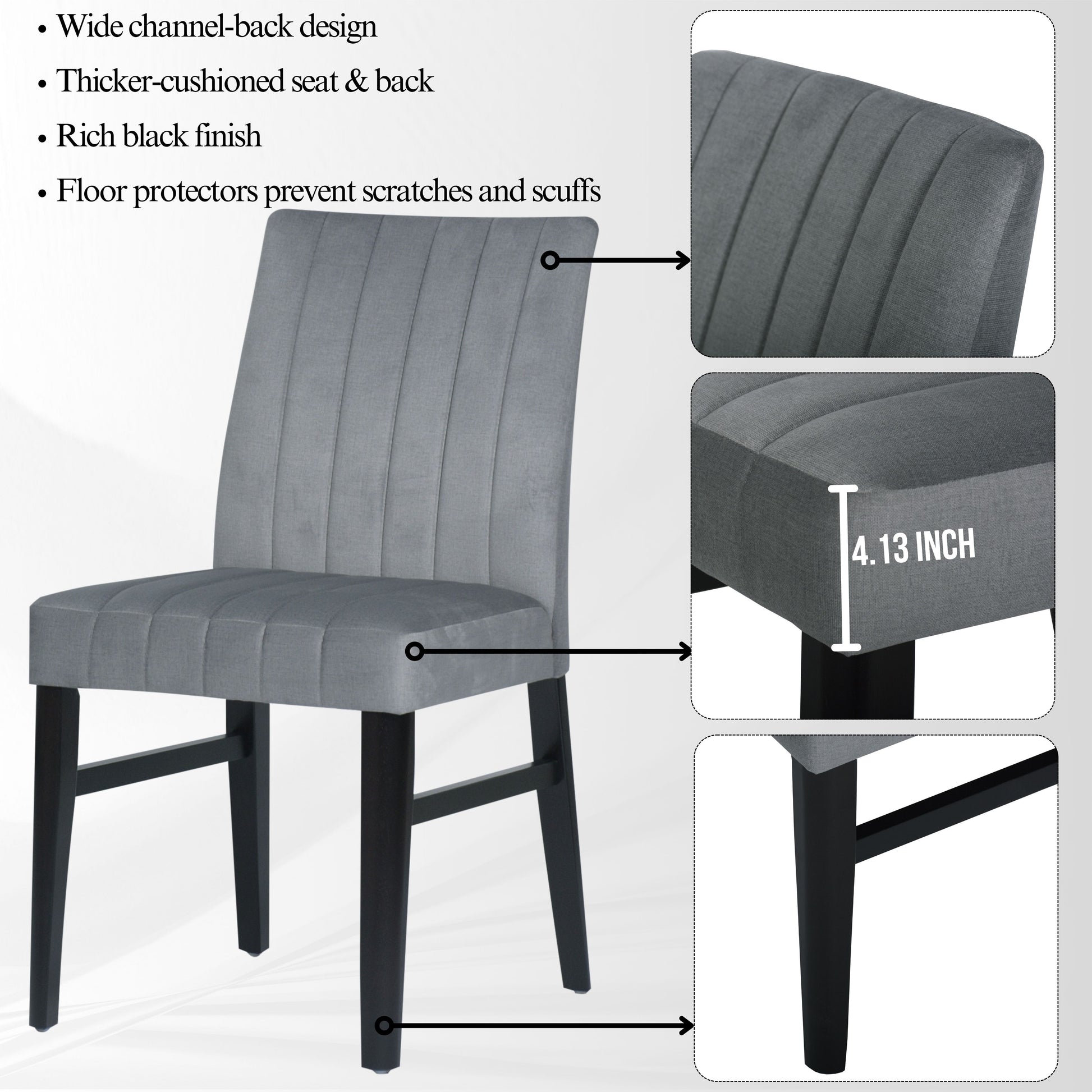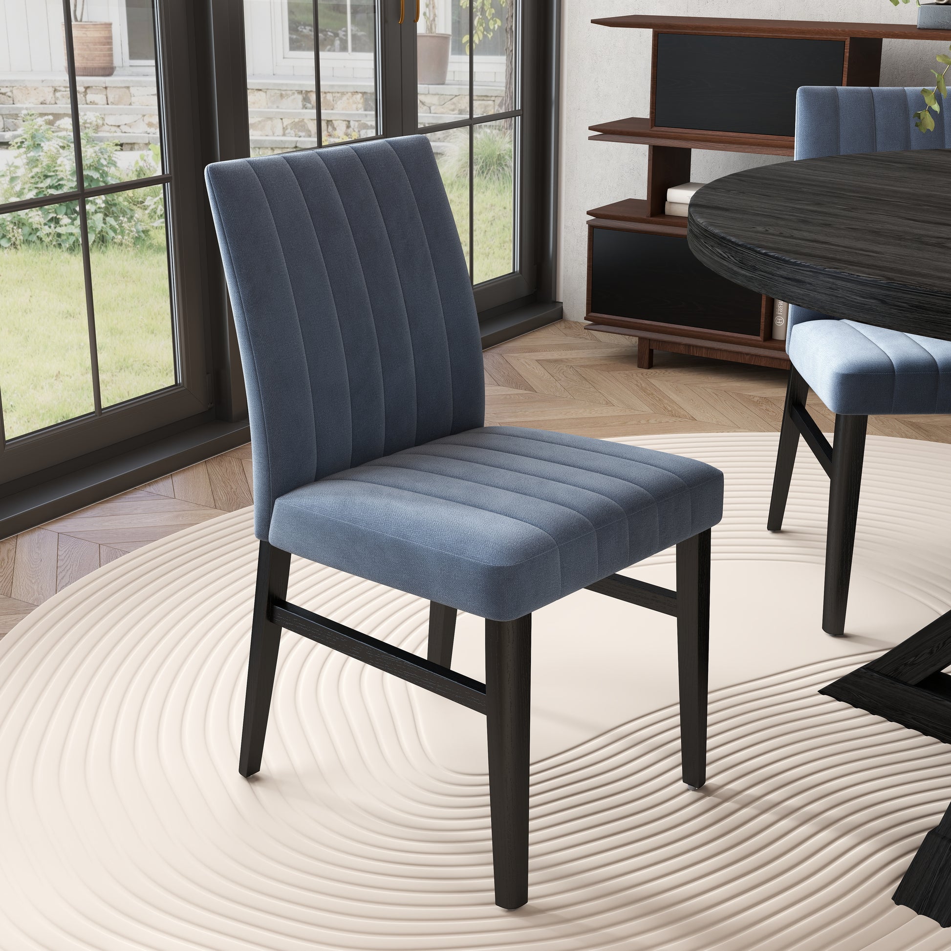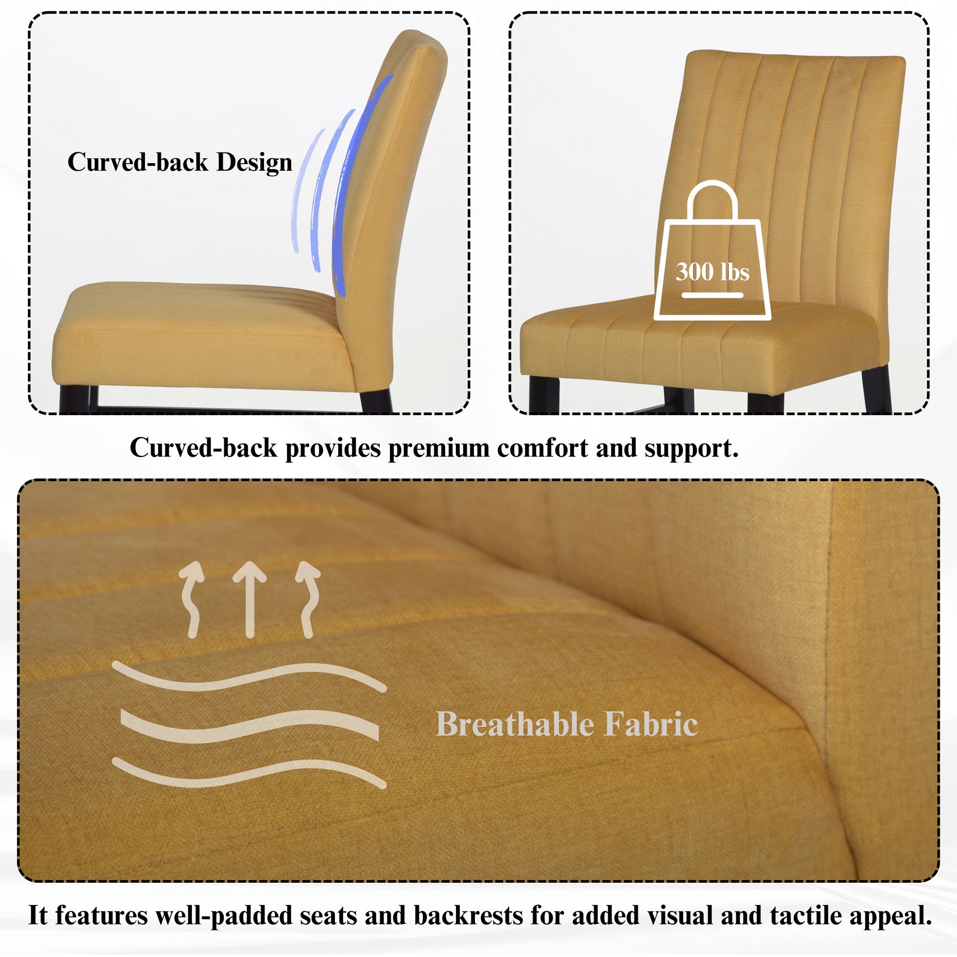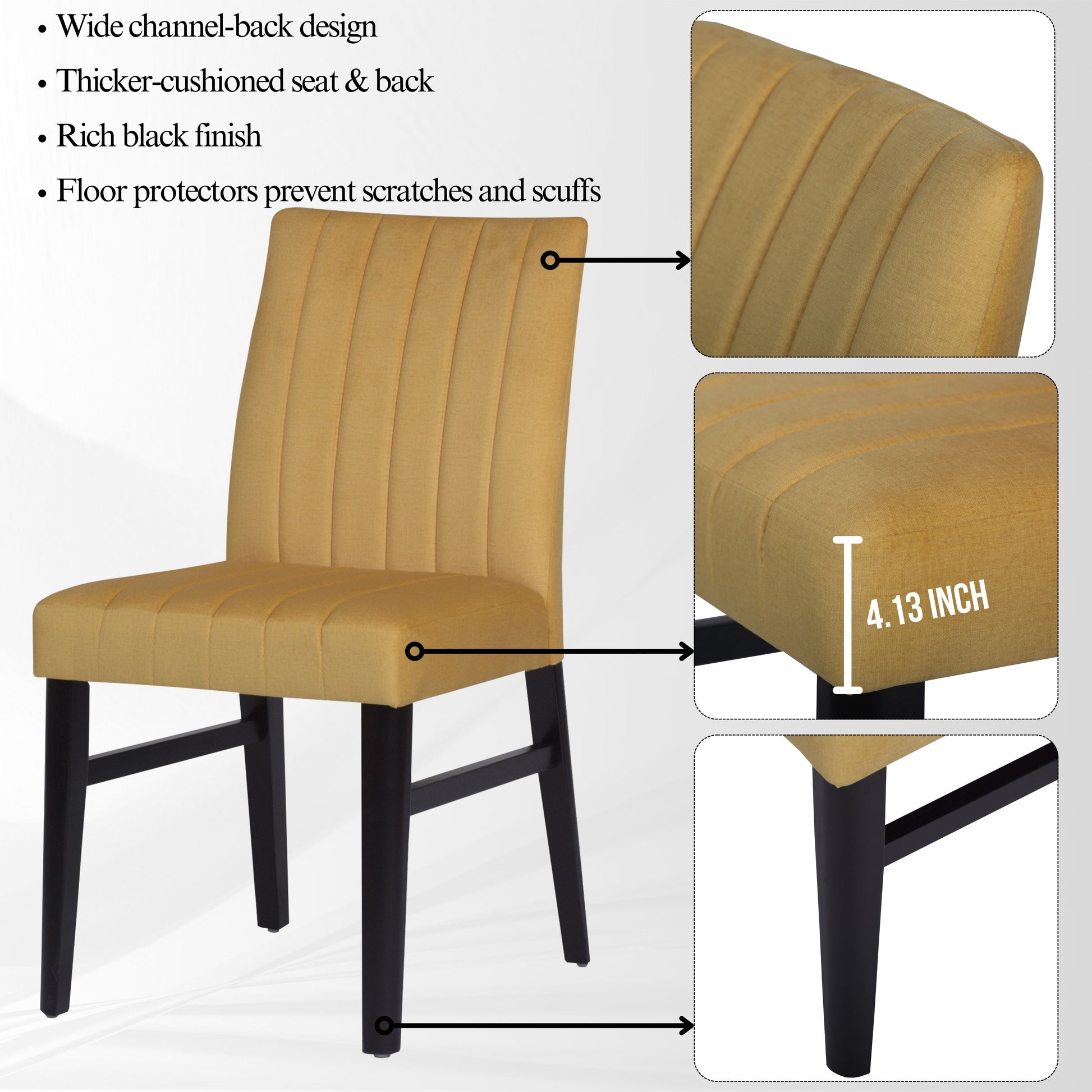 - [CHANNEL-TUFTED CHAIR]: Dining chairs have solid rubberwood frames for lasting support. The brightly colored upholstery and well-padded seat and back provide extra comfort. The chairs feature a distinctive wide channel design that adds an eye-catching element and makes them versatile enough to fit into a variety of interior design themes.