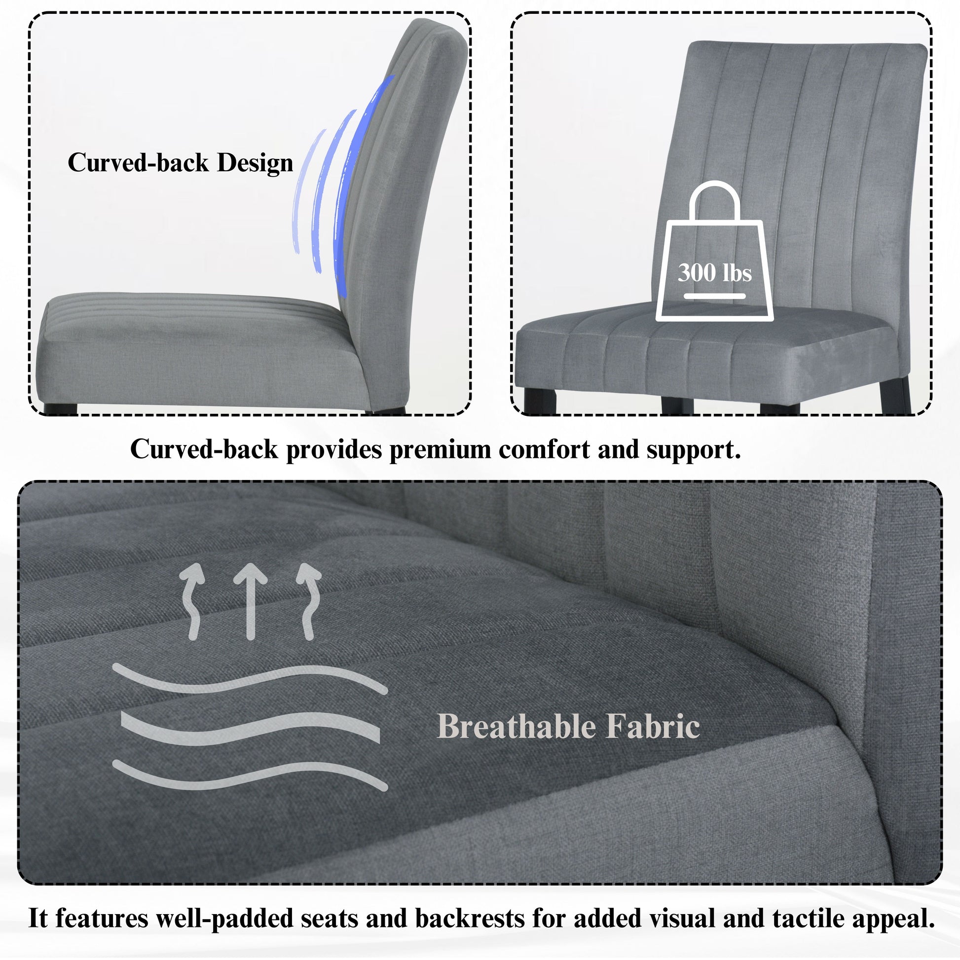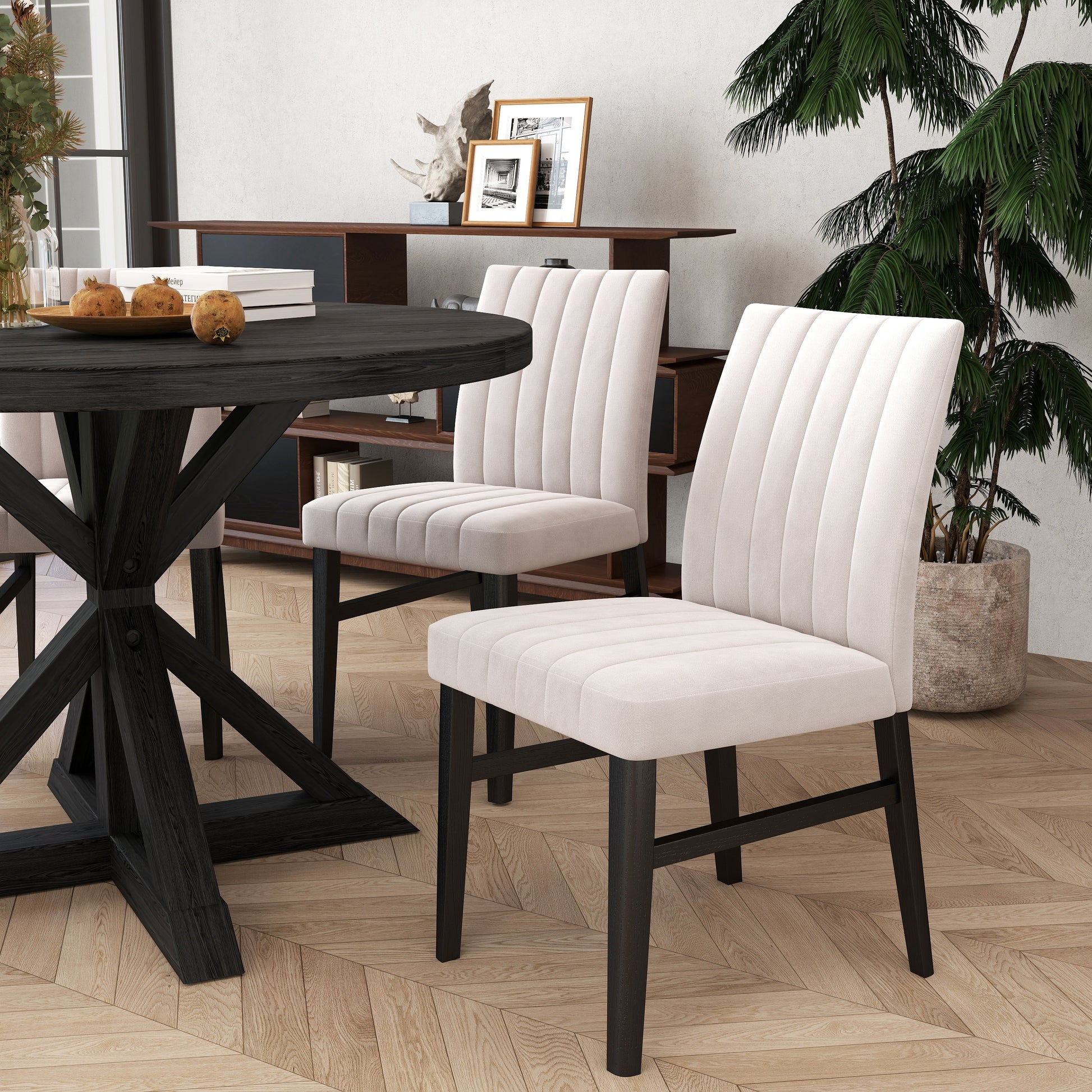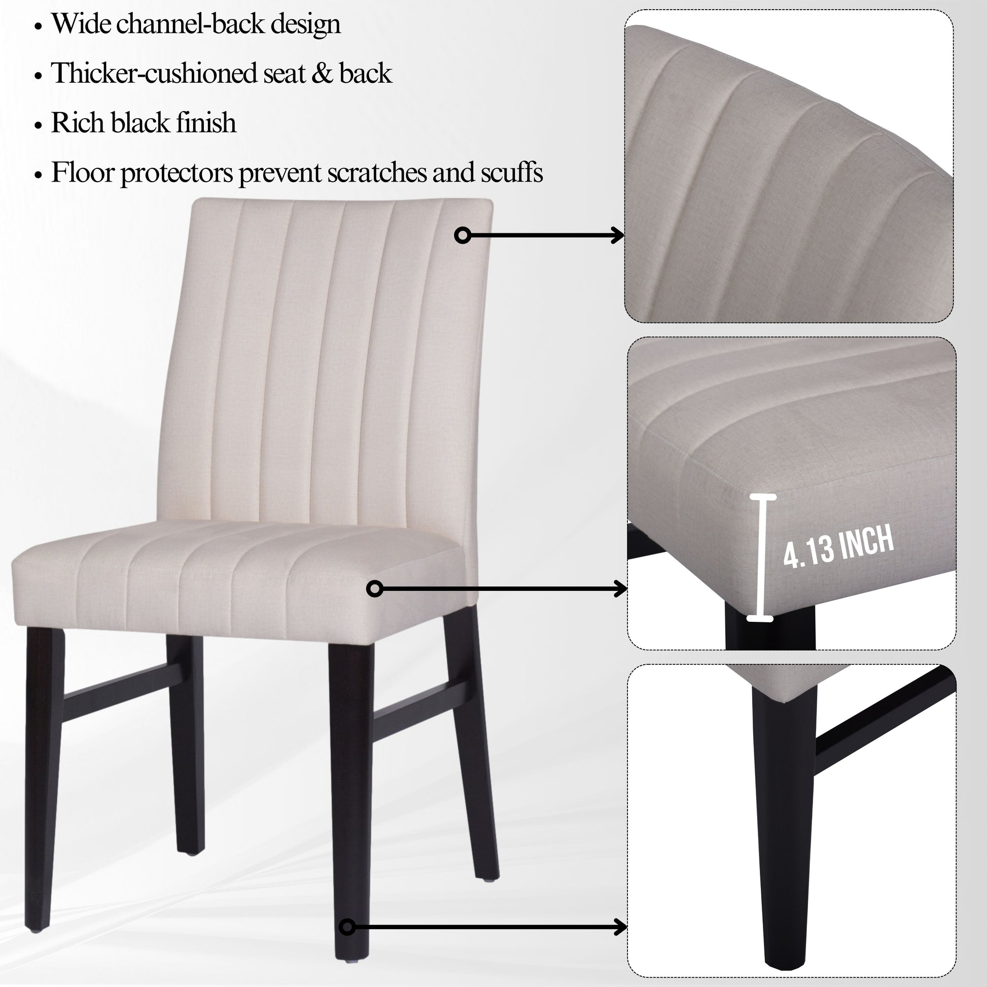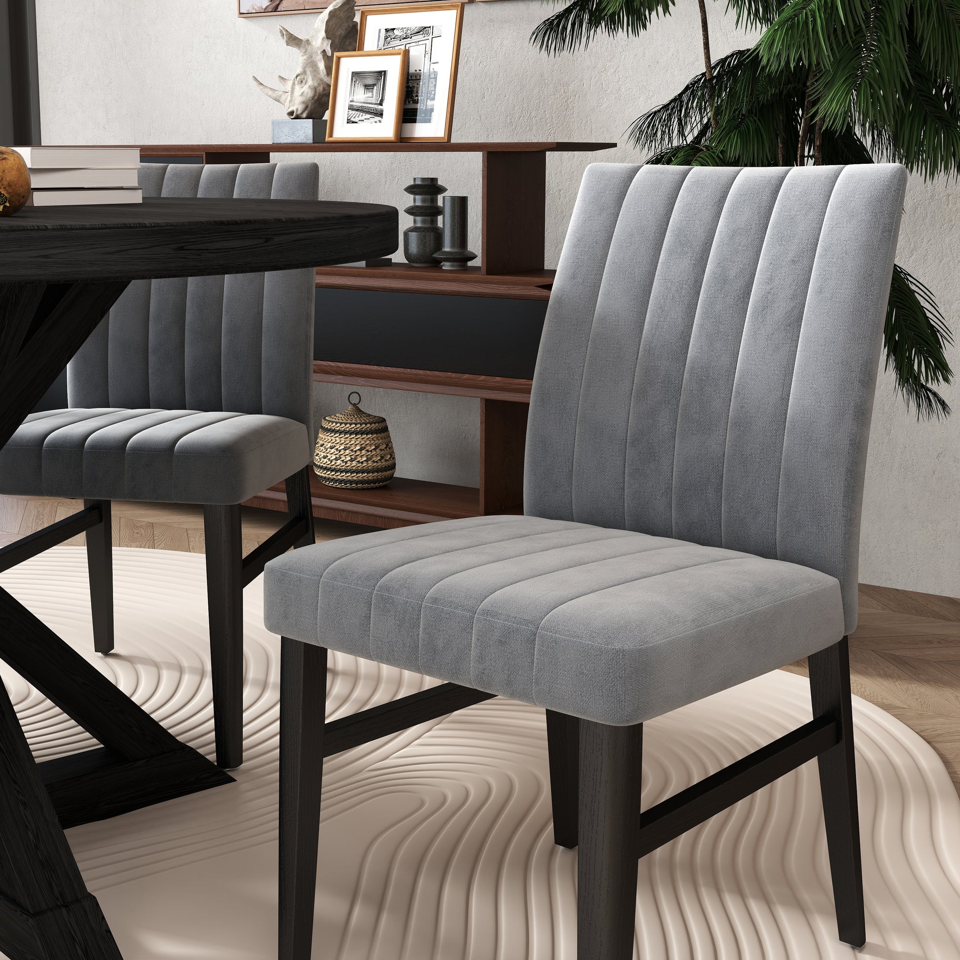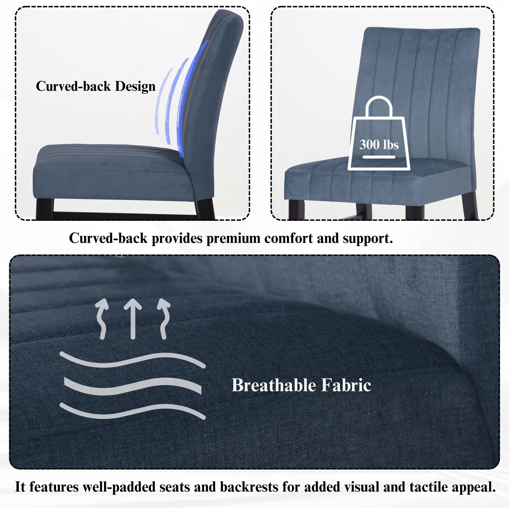- [CHANNEL-TUFTED CHAIR]: Dining chairs have solid rubberwood frames for lasting support. The brightly colored upholstery and well-padded seat and back provide extra comfort. The chairs feature a distinctive wide channel design that adds an eye-catching element and makes them versatile enough to fit into a variety of interior design themes.