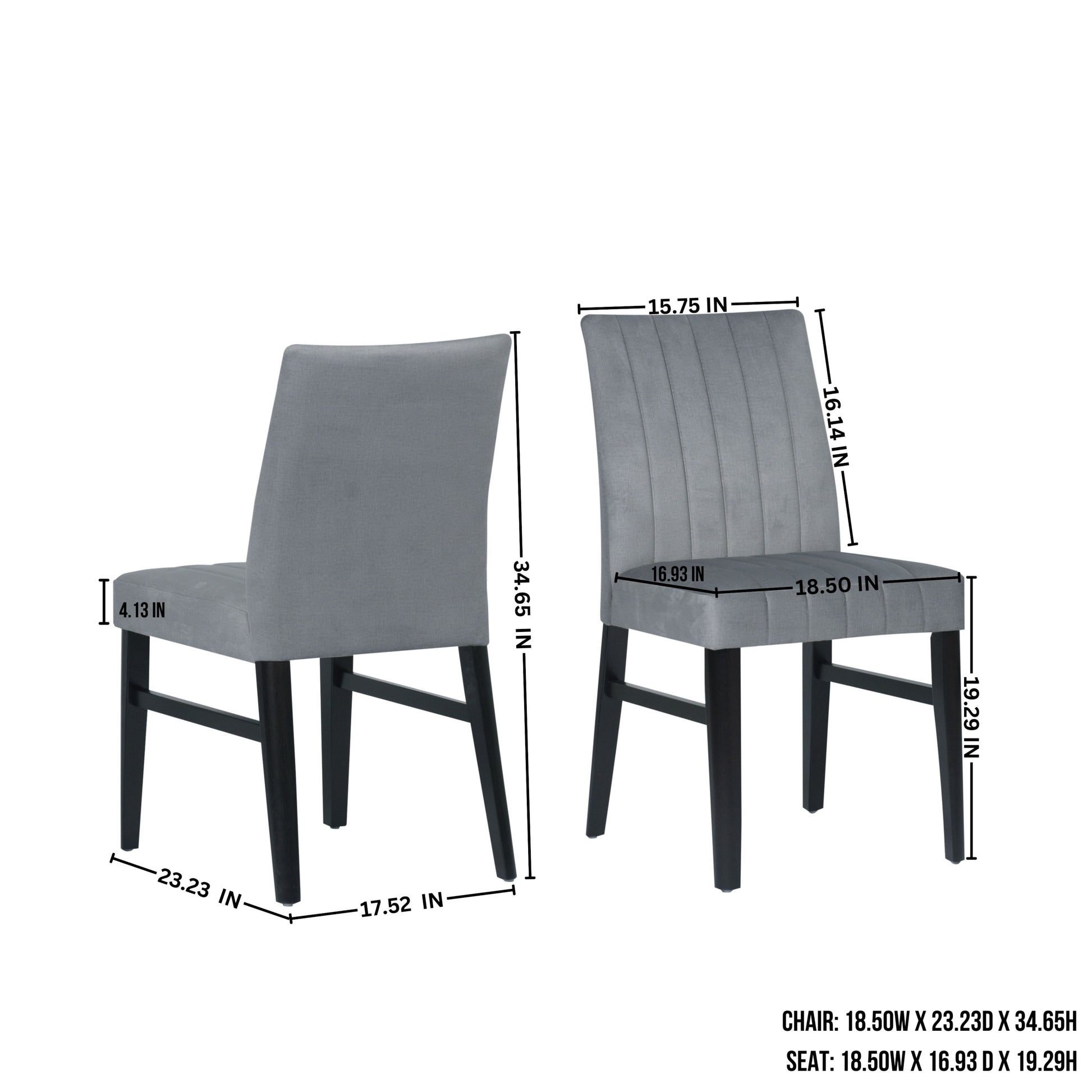 Chairs: 18.50W x 23.23D x 34.65H.